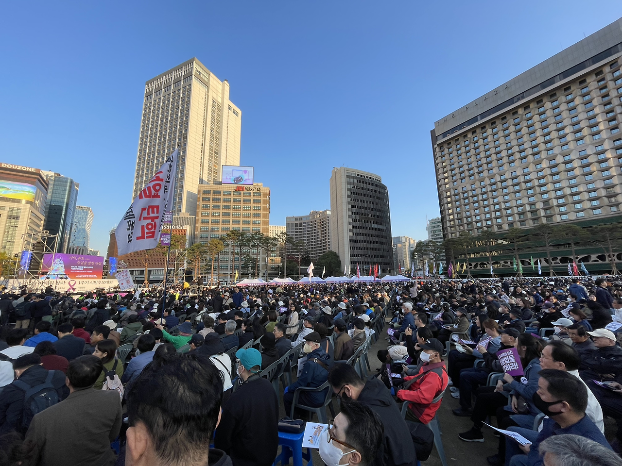기분 탓일까요? 최근 참가했던 어느 집회보다 젊은이들이 더 많이 눈에 띄었습니다. 각기 보라색이 조금이라도 들어간 옷을 입고, 보라색 리본을 달고, 보라색 손팻말을 들고 있는 그들.