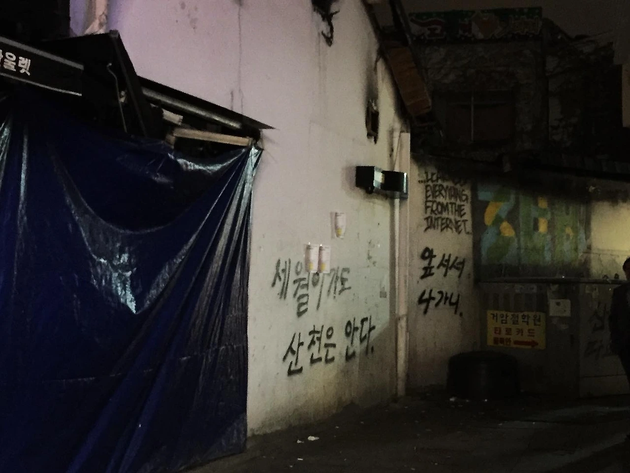 동지는 간데없고 깃발만 나부껴. 새날이 올때까지 흔들리지말자.