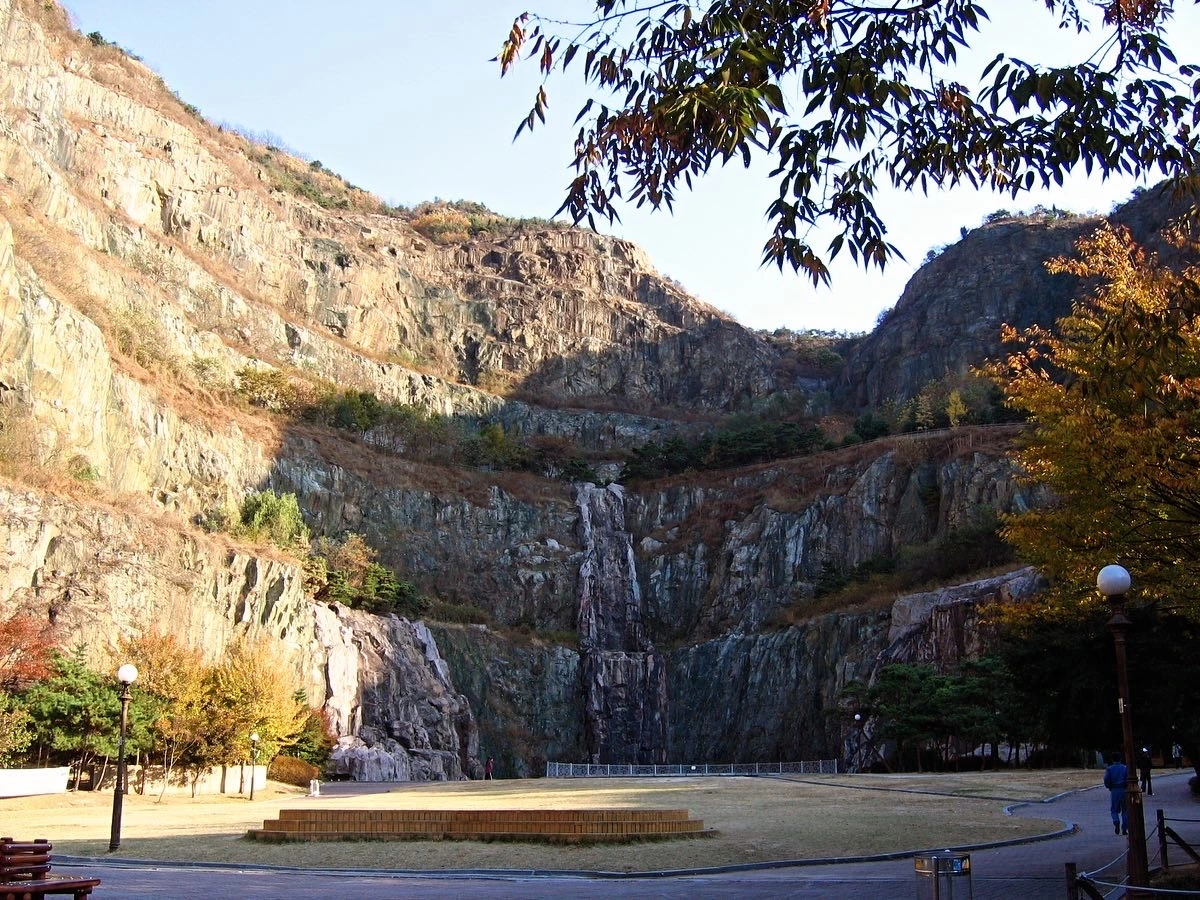 채석하던 산자락은 절벽이 되어 물이 흐르는,