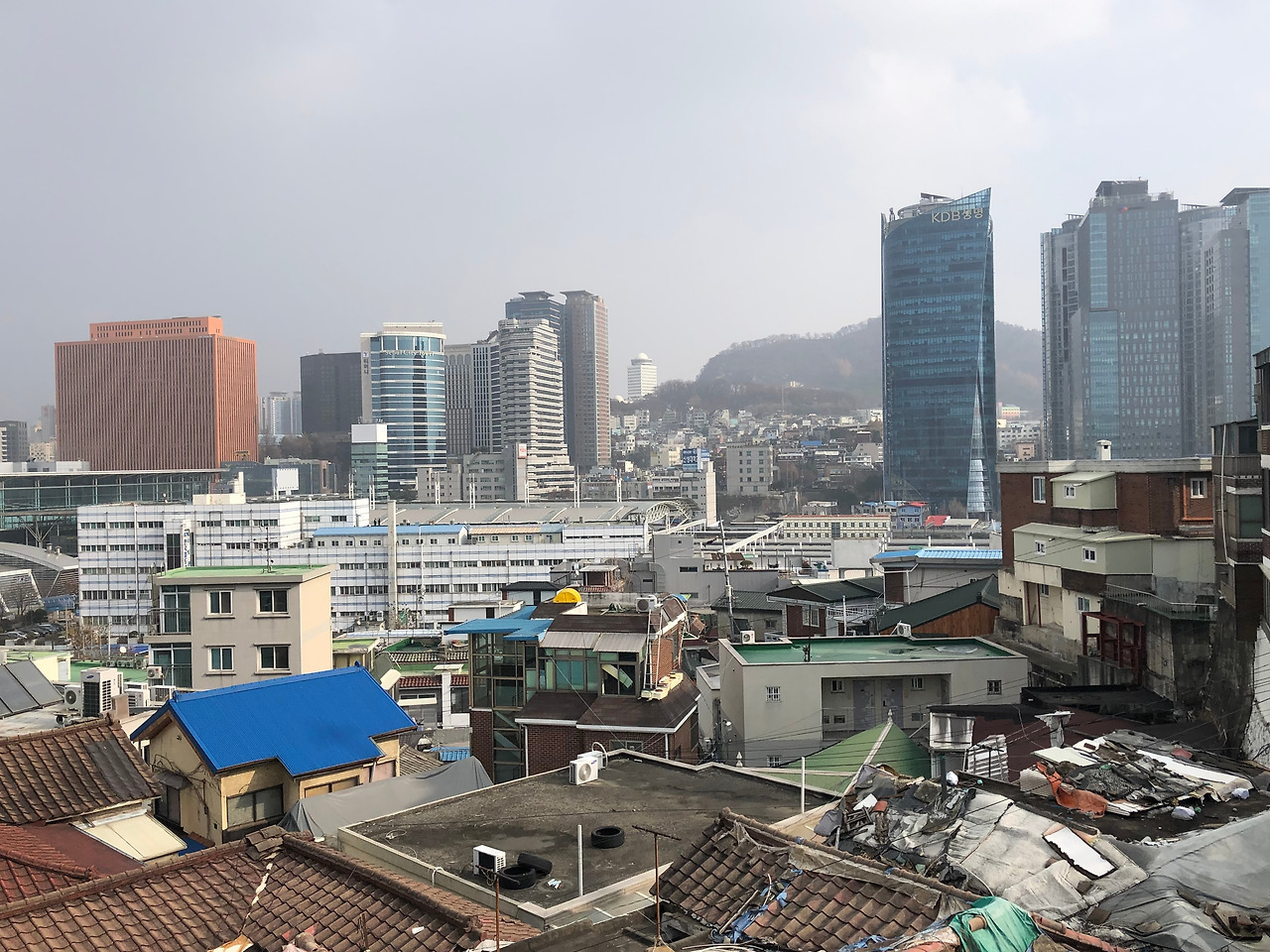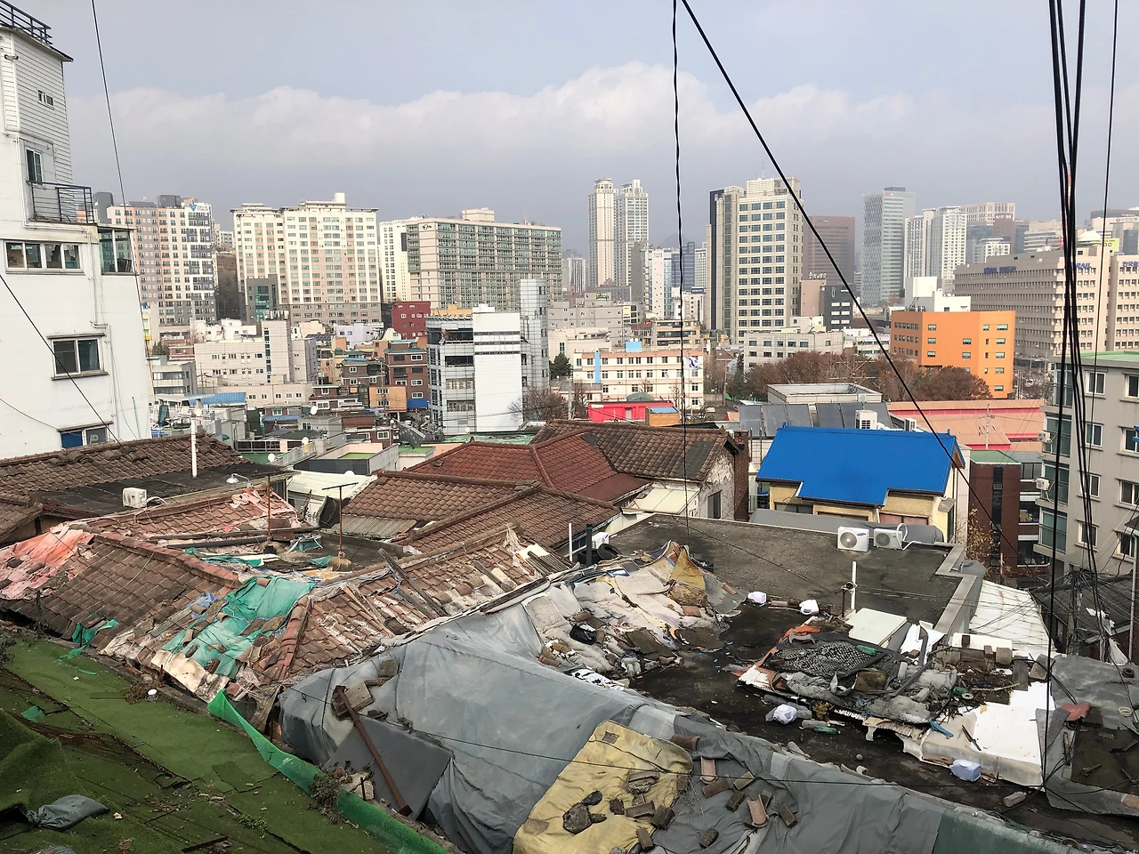 수도의 화려한 빌딩숲 뒤로 아직까지 남겨져 있는,
