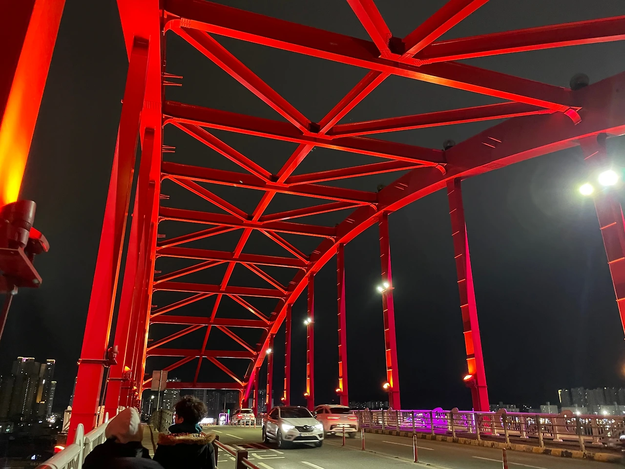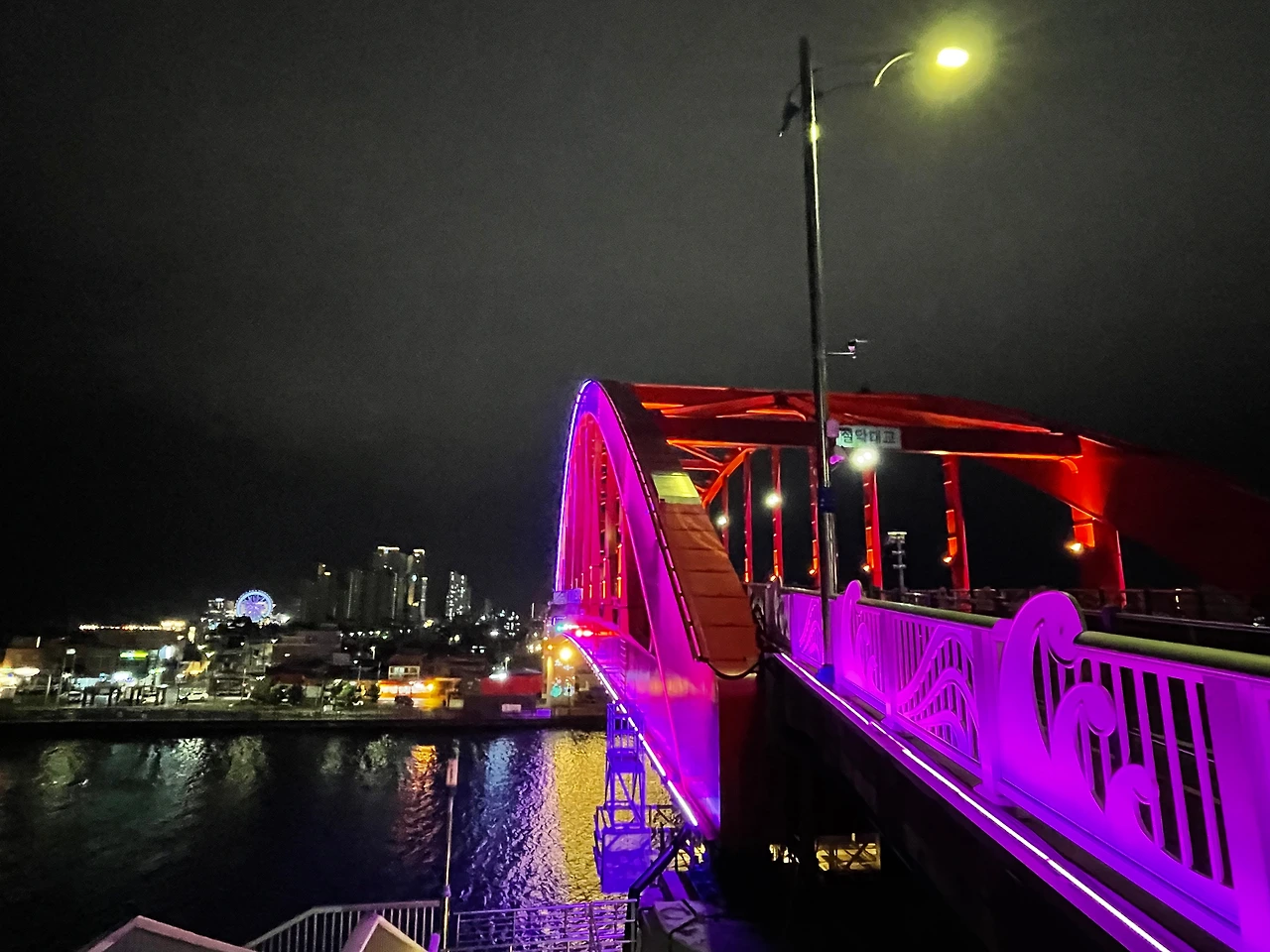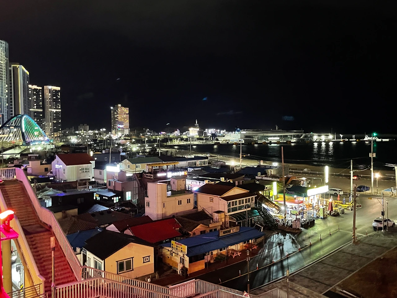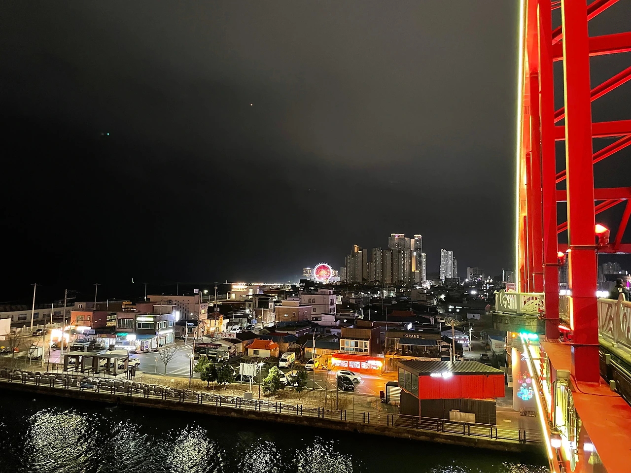 속초의 랜드마크가 되어버린 교량과 그 밑의 실향민 마을.