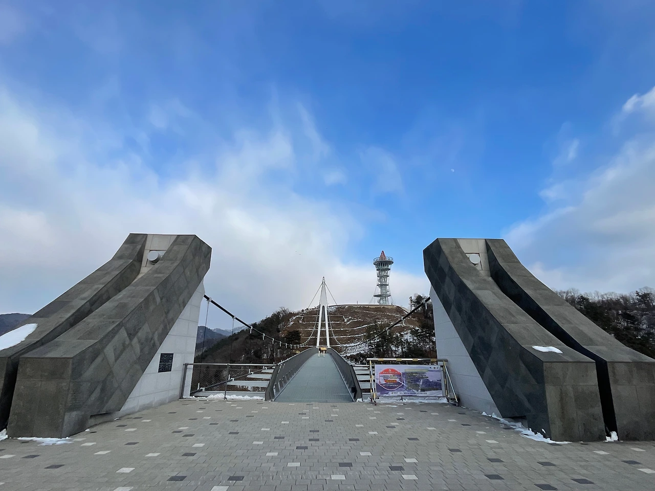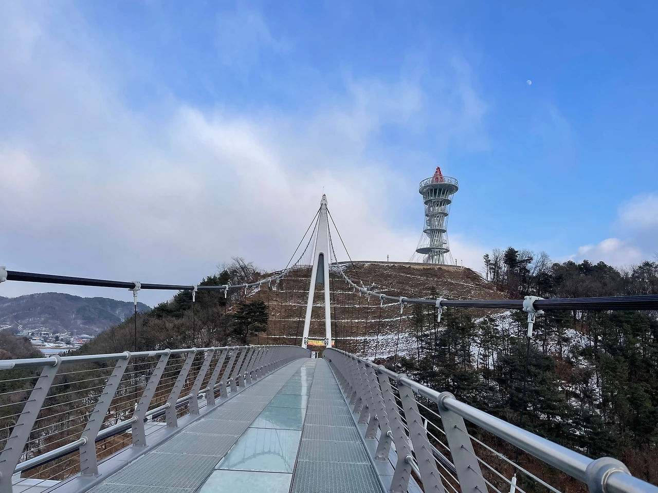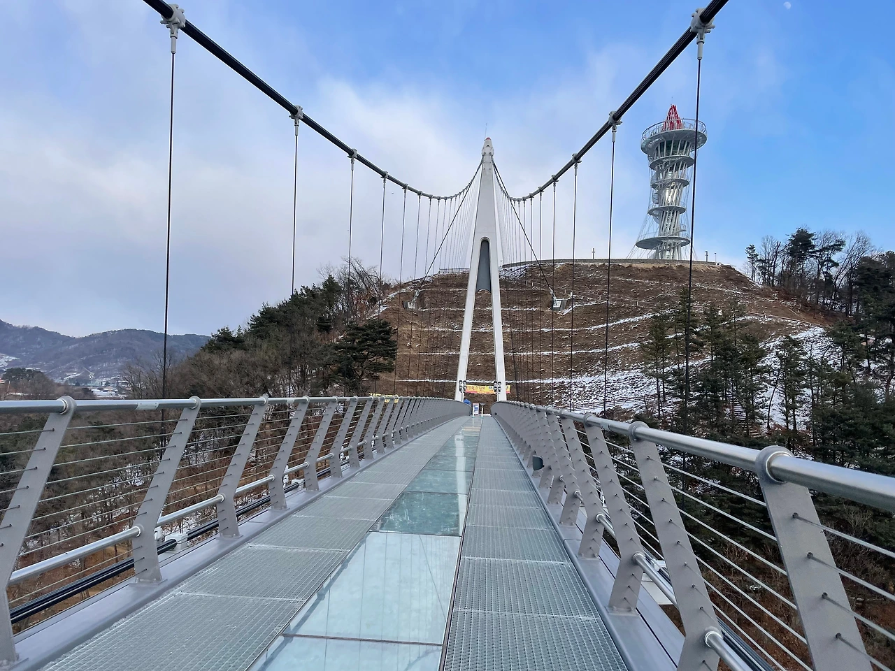 연장 180m, 폭3m의 1주탑 비대칭 현수교.