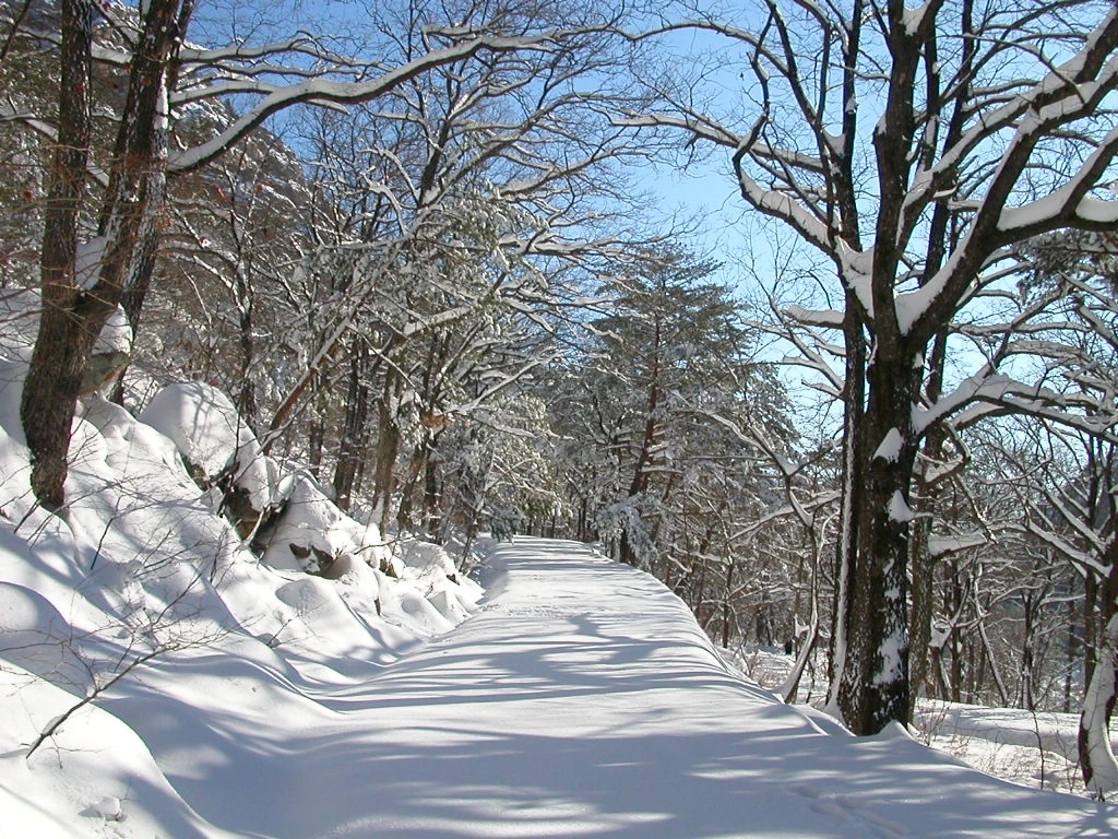 금강산 일만이천봉의 만물상으로 향하는 길.
