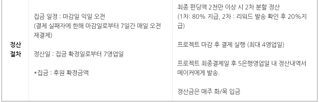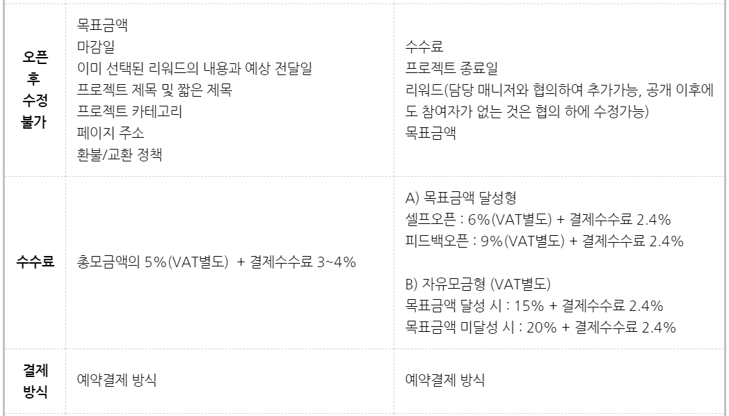 이 밖에도 각 세부적인 부분에서 서로 정책 다른 부분이 있습니다. 이 부분들은 공통된 주제로 묶어 보여드리긴 힘들어 배제하였으니 위의 기본 정책을 참고로 세부 사항은 별도 확인하시는 것이 좋겠습니다.펀딩에 도전하는 분들에게 조금이나마 유용한 자료가 됐길 바라며, 펀딩 컨설팅 문의는 언제든 아래 네임카드 내의 컨택포인트로 연락주세요.
