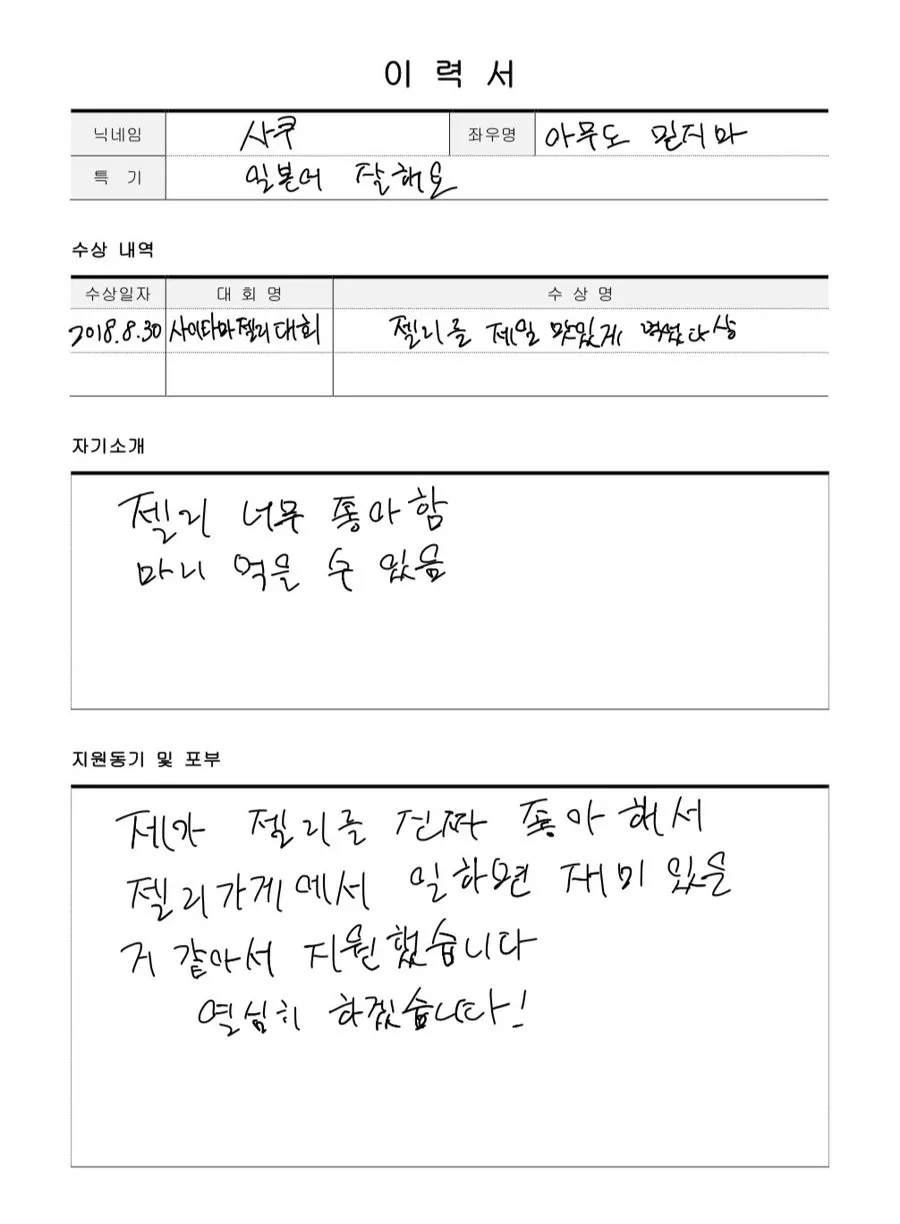 곧이어 올라온 채용 공고는 팬들이 앞서 진행된 버스 광고를 납득하게, 동시에 팬들의 덕질을 더욱 재미있게 만들었다. 마치 진짜인 듯한 사실적인 채용 공고를 올렸고, 실제로 팬들에게 이력서를 받았다. 그 후 합격한 사람들의 이력서를 공개하며 이 재미를 이어갔다. 멤버들의 성격이 담긴 이력서도 함께 업로드하며 과하게 사실적이지 않게, 팬들이 즐길 수 있게 했다. 팬들은 멤버들의 이력서를 보며 ‘이거 입사비리 아니냐’ '어떻게 좌우명이 아무도 믿지 마인데 뽑혔음' 하며 웃었다.