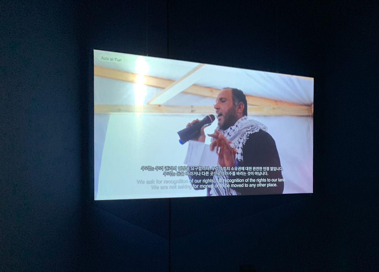 반면 국립현대미술관 <불온한 데이터>에서 전시되는 포렌식 아키텍처의 <지상 검증 자료>는 수직적 시점의 단일한 해석을 전복시킨다. 이들은 이스라엘 북부에서 발생한 베두인족의 강제 이주에 저항하기 위해 항공 지상 관측 사진을 수집해 정부가 숨긴 진실을 파헤친다. '지도상에 나타나지 않는 마을은 사회기반시설의 혜택을 받지 못할 뿐 아니라 새로이 들어설 유대인 정착지에 자리를 내주기 위해 철거’되는데, 이 마을들 역시 <위에서 본 장면>의 M처럼 기록되지 않아 유폐되는 존재다. 이에 대항하기 위해, 포렌식 아키텍처는 주민들과 함께 풍선에 달린 카메라로 지면을 기록하고 이 데이터는 ‘하나의 특권적 중심점이 없는 사진 환경, 포인트 클라우드를 구축’하며 일종의 사형 선고를 받은 마을을 구해낼 수 있는 기반이 된다.