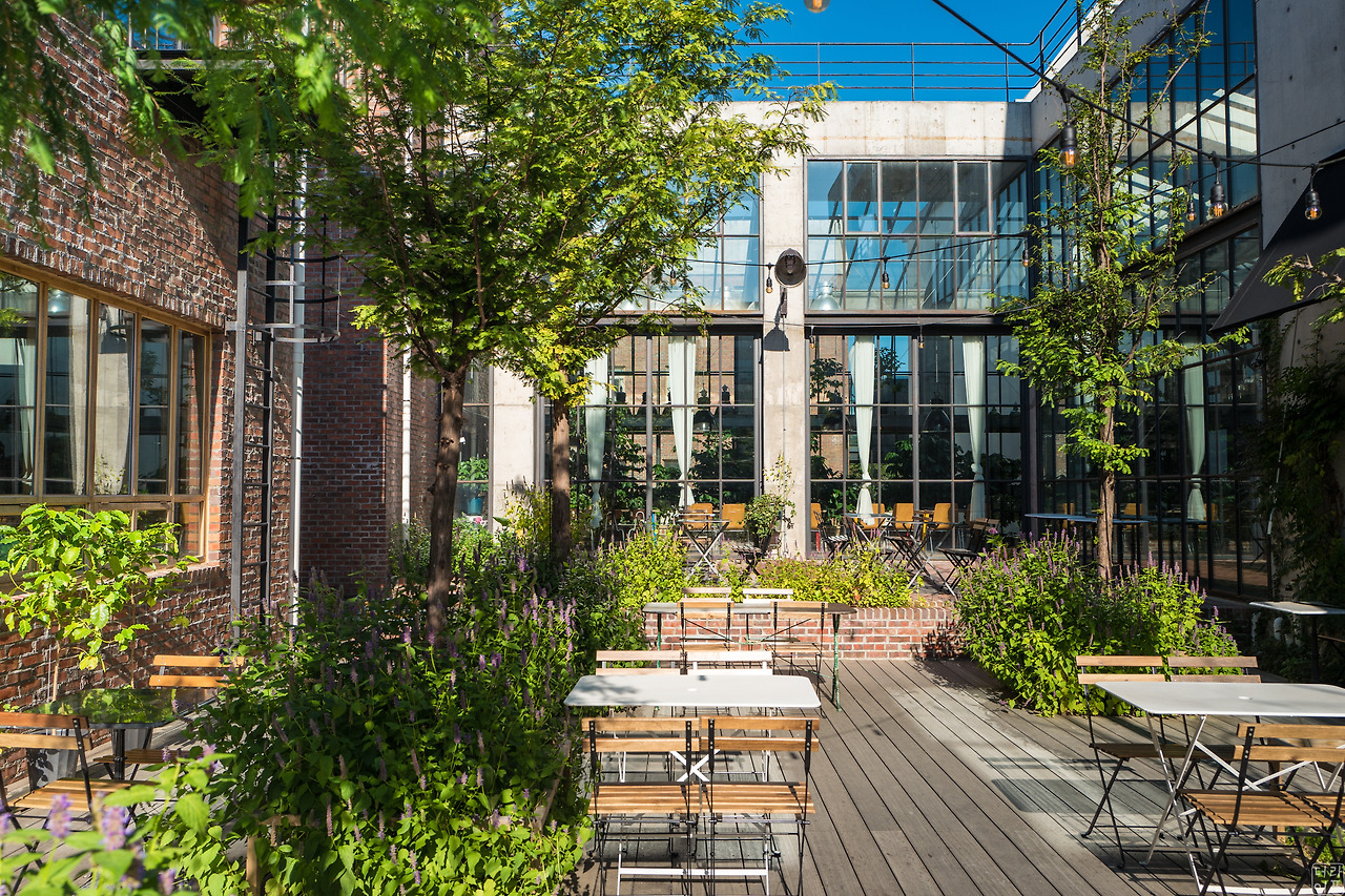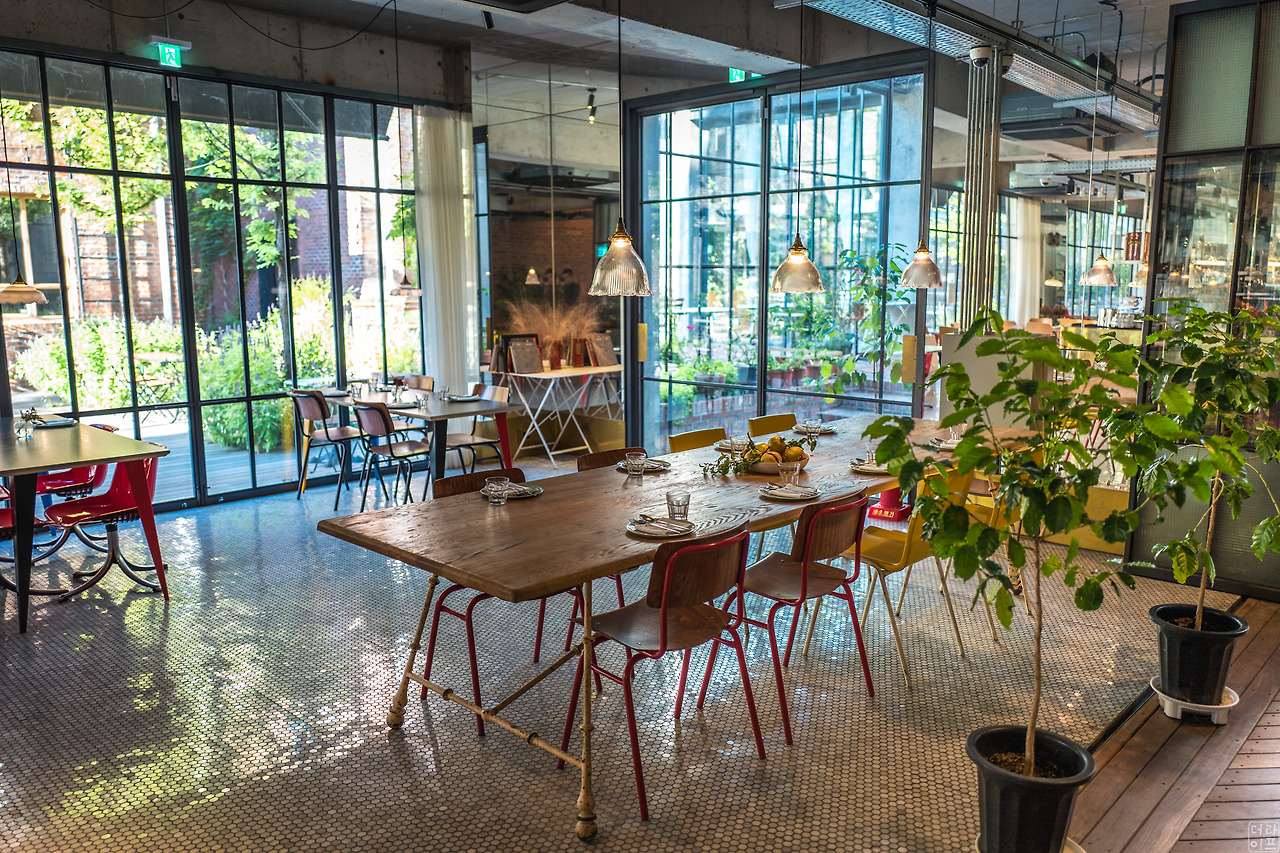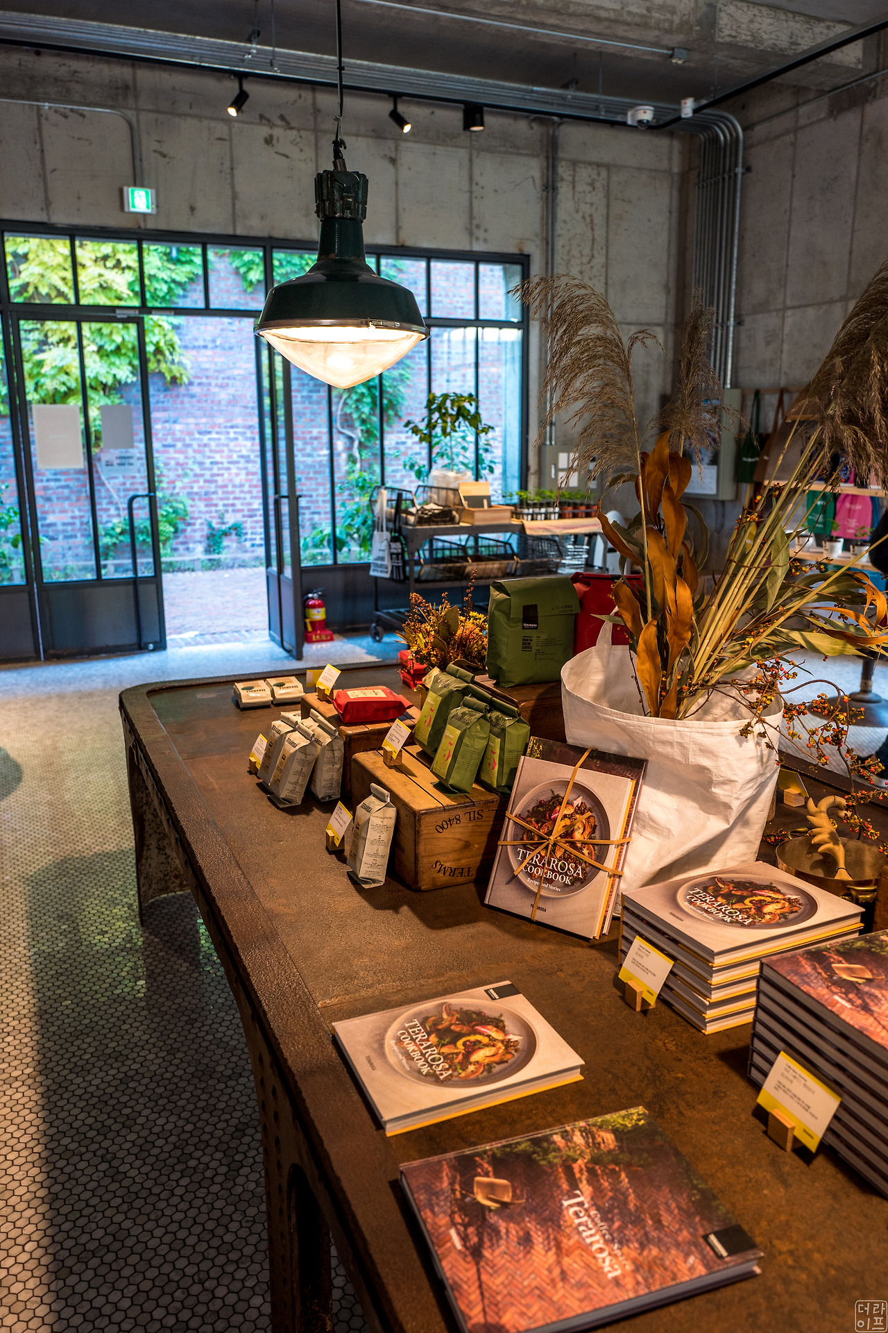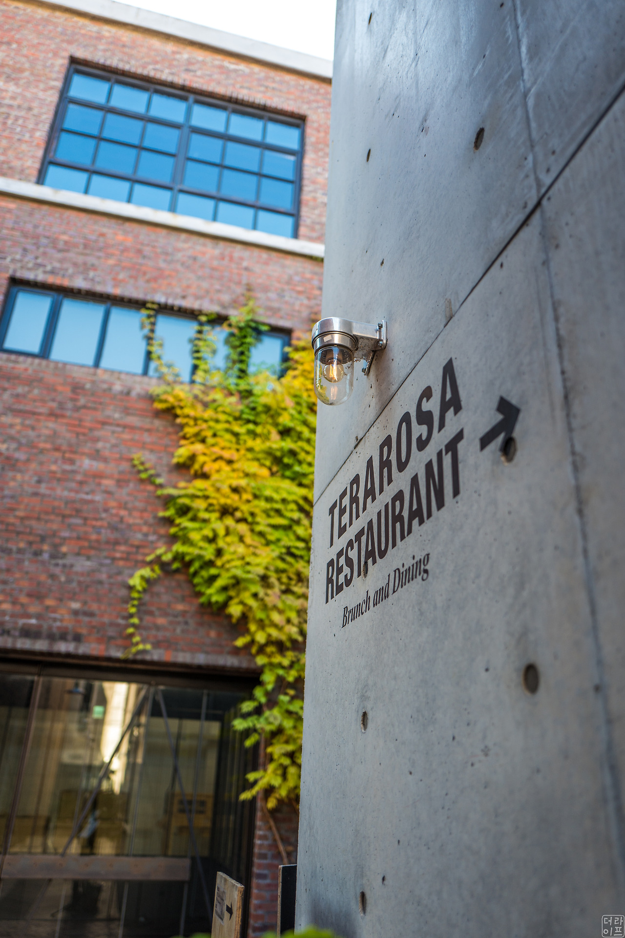 음식점의 내부 인테리어도 상당히 마음을 편안하게 만들어 준다. 음식점 건너편에 테라로사 카페가 있고, 그 중간에 정원 같은 야외 테라스 공간이 있는데, 큰 유리를 통해 이 공간을 바라볼 수 있어 식사를 하는 내내 눈이 시원하다.