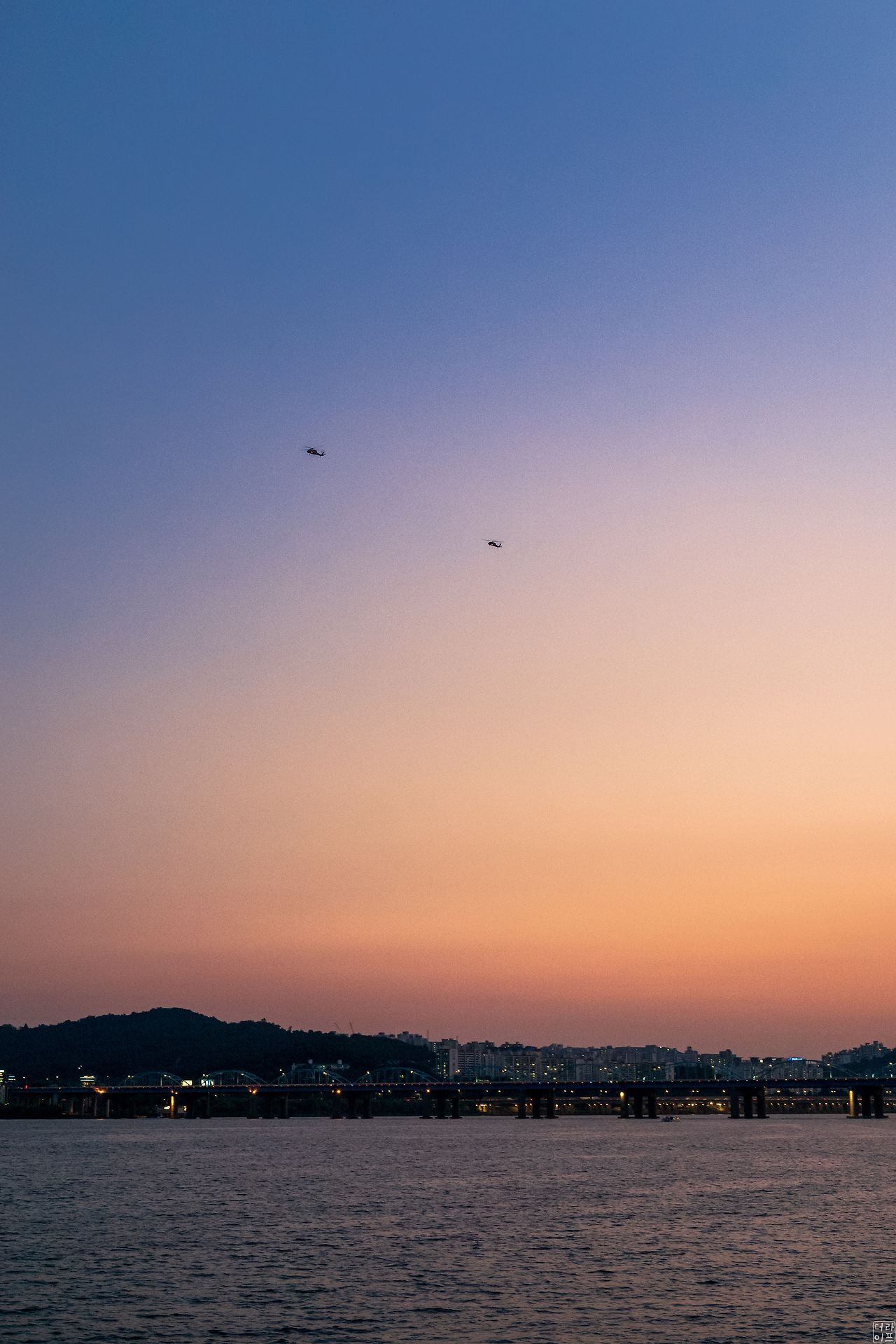 한강은 해가 지는 순간부터 해가 지고 난 직후까지가 참 매력적이다. 시시각각 변하는 모습 때문에 잠시도 한눈을 팔 수가 없다.