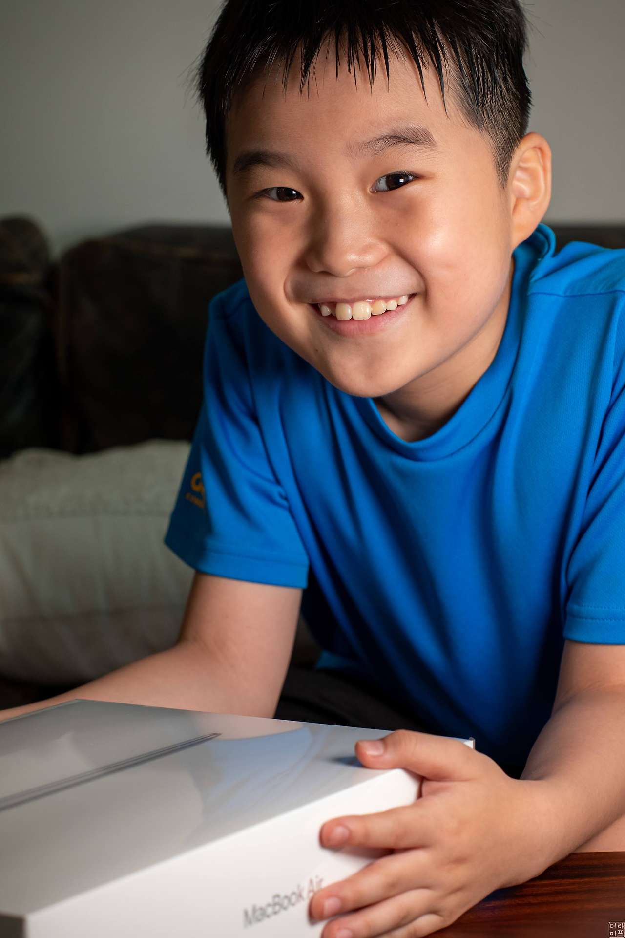 DHL 박스만 내가 오픈해 주고 아들이 직접 MacBook Air 케이스를 오픈했다. 새 노트북을 열며 환하게 웃는 얼굴을 담고 싶어 카메라를 옆에 두고 조명도 켰다.