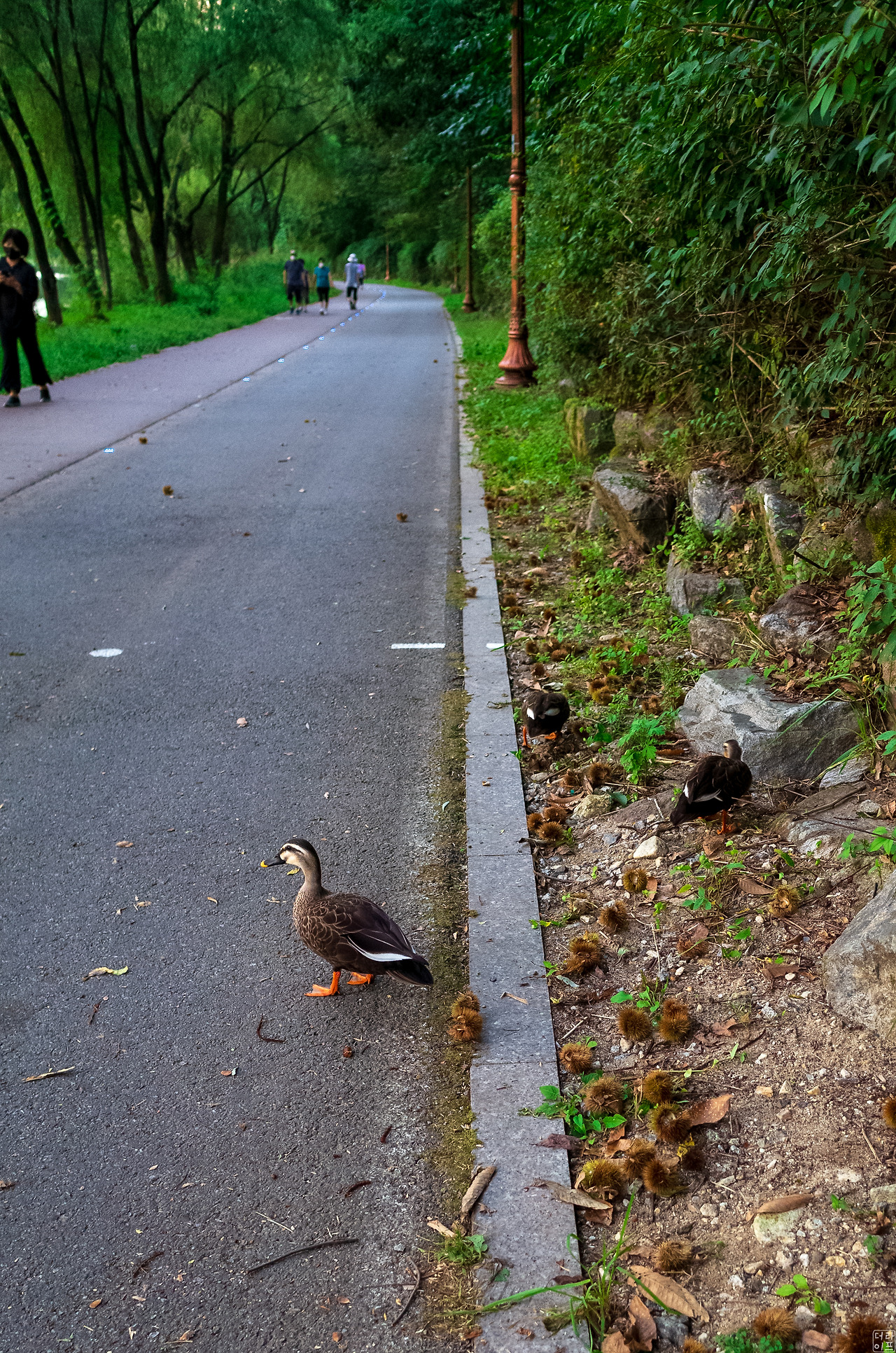 위 사진은 탄천 산책 중 찍은 사진이다. 오리들이 자전거 도로를 가로질러 밤송이로 향하는 모습을 담은 사진이다. 오리가 밤을 좋아한다는 걸 처음 알았다!