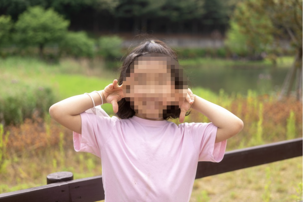 책임을 물을 수도 없는 아이가, 고가의 카메라 장비를 혹시라도 떨어트릴까 봐 걱정이 스쳤지만, 자신의 이야기를 하느라 행복해하는 아이의 얼굴을 보고 허락해 주었다. 그리고, 자신도 찍어달라고 해서 예쁘게 사진을 담아 주었다. (부모의 허락을 받지 못해서 얼굴은 모자이크로 가렸다.)