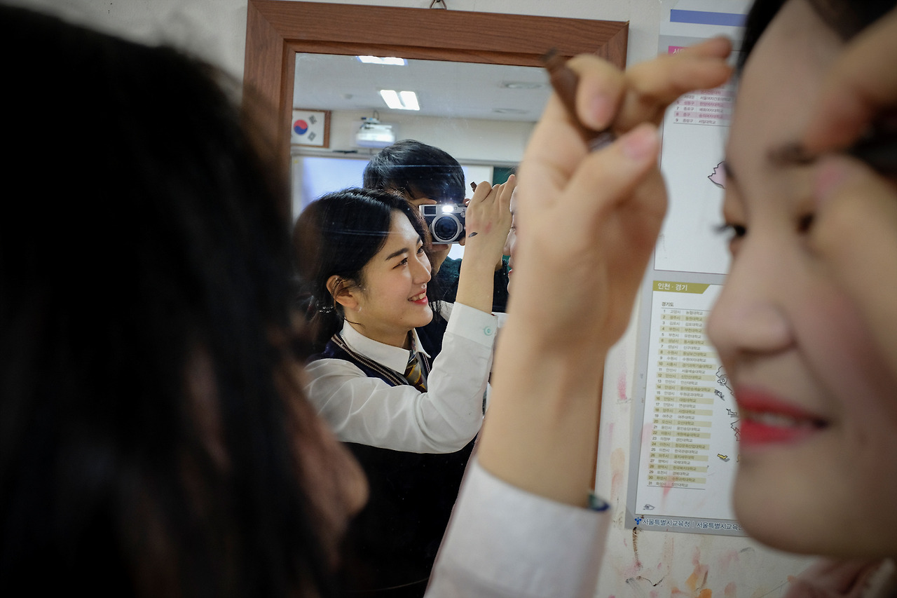 아무리 화장이 규제 대상이 아니라고 해도 선생님 앞에서 편안하게 화장을 하는 10대 후반의 모습이 상상이 가는가? 물론, 학생과 이런 유대감을 형성하기까지 얼마나 오랜 시간이 걸렸을지도 상상해 보면 정말 대단하다는 생각이 든다.