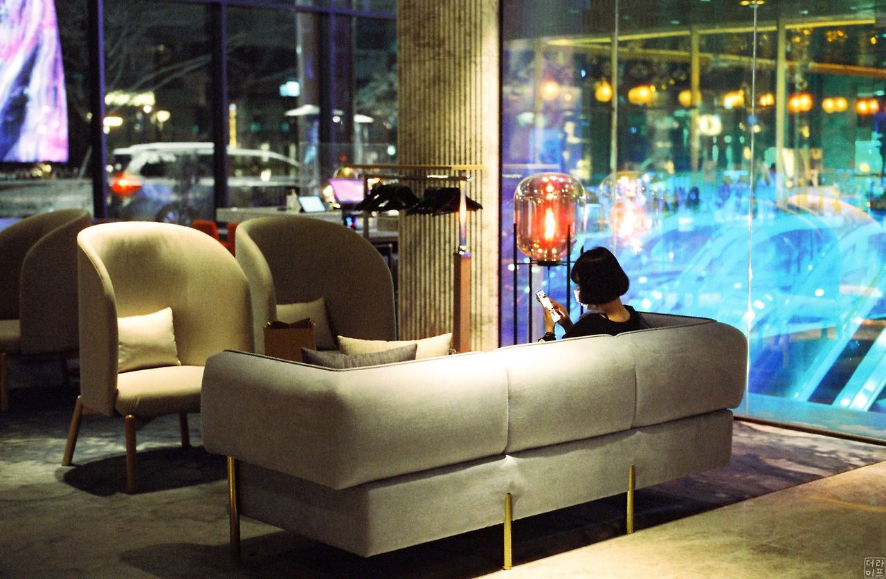 다음은 씨네 스틸 800T 필름을 이용해서 찍은 사진이다. 어둠이 내린 뒤 실내지만, 호텔이라 간접 조명만 있어 사진을 찍기 쉽지 않은 상황이었다. Summilux 렌즈의 밝은 조리개 F/1.4 와 800 감도의 조합이더라도 실내조명이 없으면 사진 찍기 어려웠을 것이다.