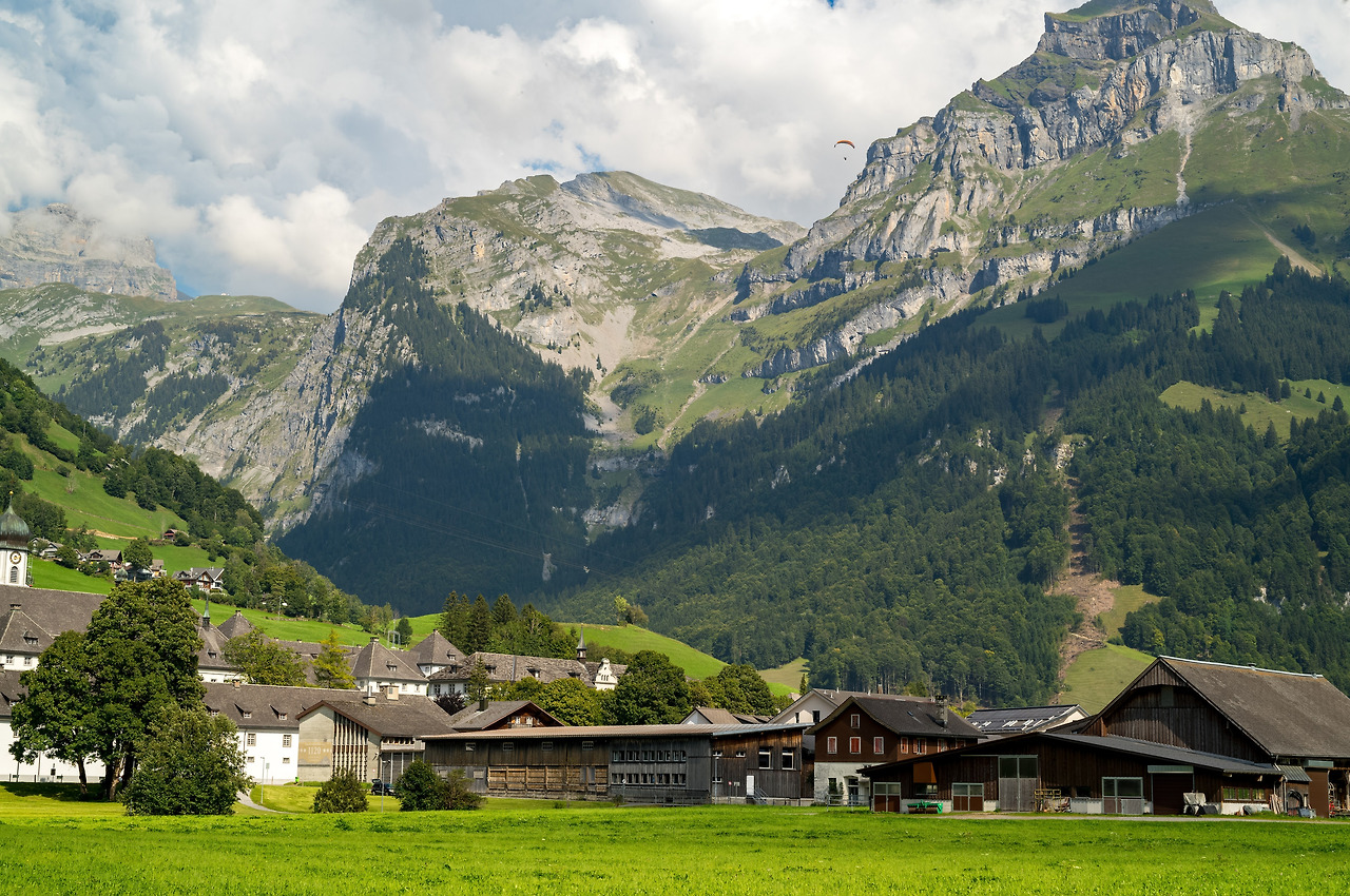 마치 작은 마을(하지만, 탁 트인 시야 때문에 실제로는 꽤 먼 거리까지 이어질 거라 보이는) 을 마치 병풍처럼 둘러싼 티틀리스 산은 상상 속의 알프스산맥 그대로의 모습이었다.