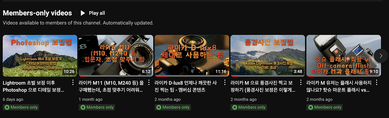 또 한 가지 리소스는 유튜브 채널의 멤버십 영상이다.
