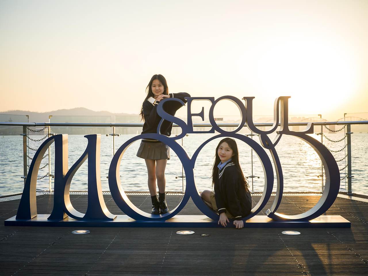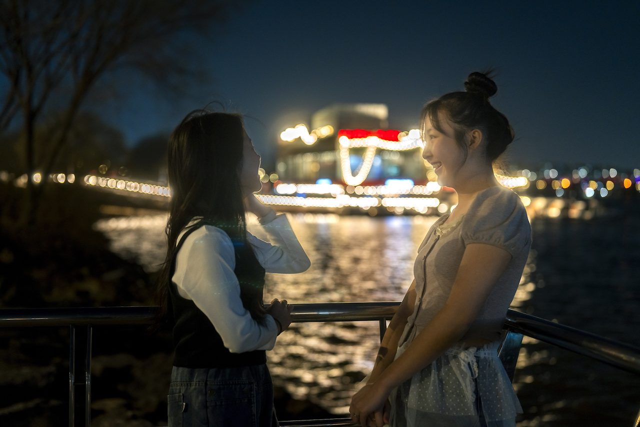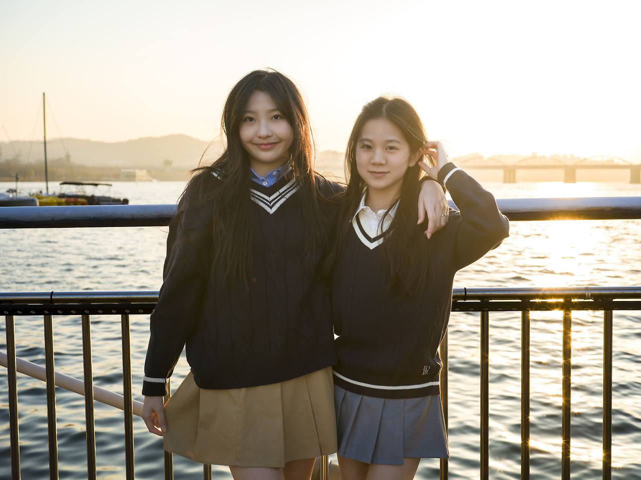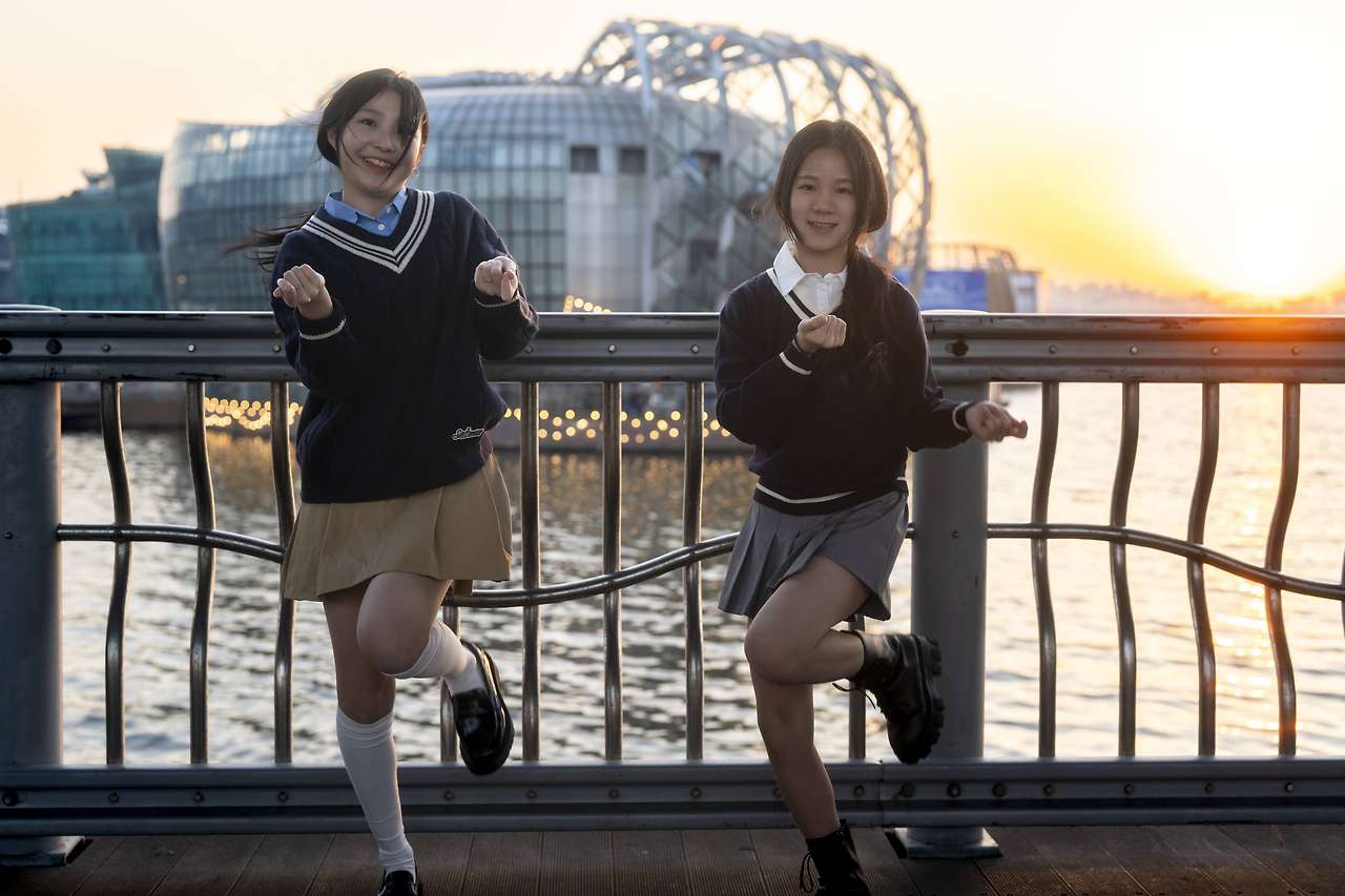 봄이었지만, 무척 찬 바람이 불어 추웠던 날 밤, 한강이라는 멋진 무대에서 촬영한 아이돌 지망생 소녀 두 명을 소개해 보았다.