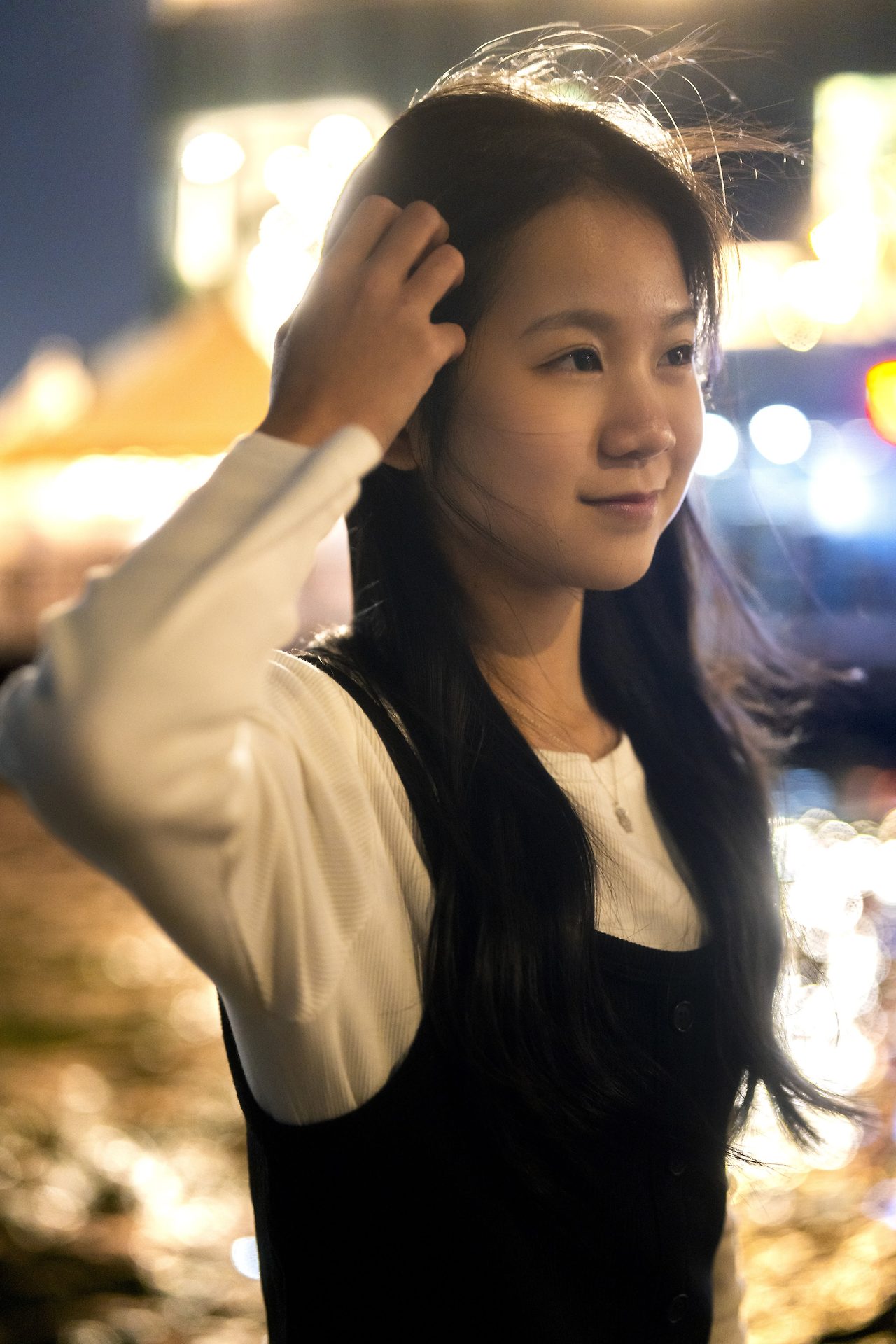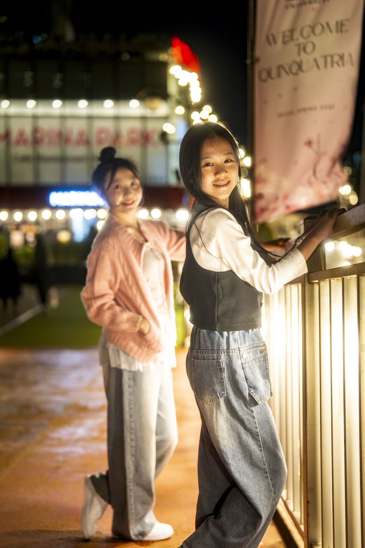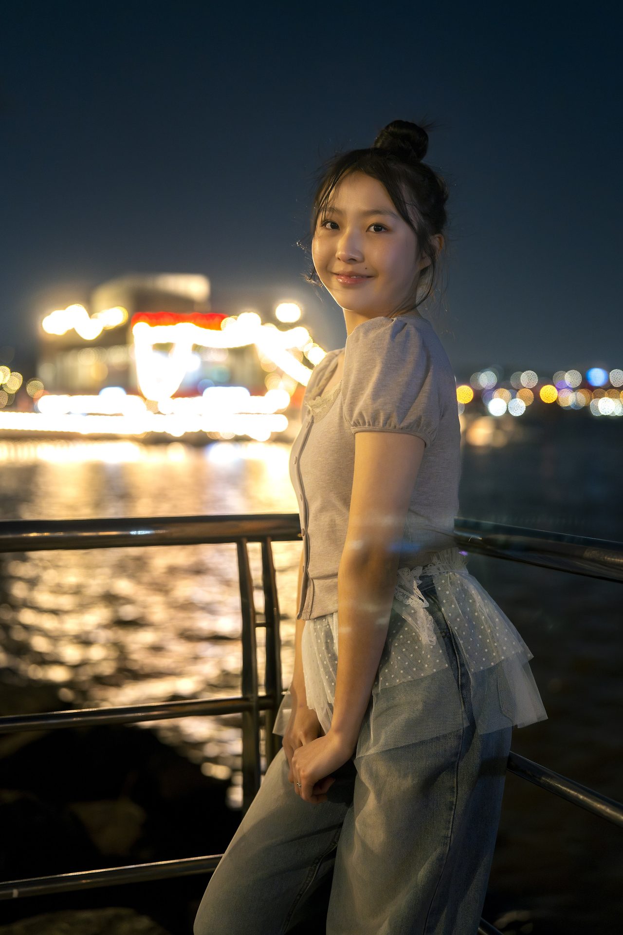 봄이었지만, 무척 찬 바람이 불어 추웠던 날 밤, 한강이라는 멋진 무대에서 촬영한 아이돌 지망생 소녀 두 명을 소개해 보았다.