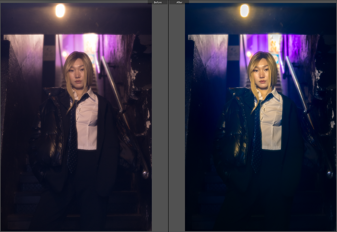 내가 추구하는 인물사진은 영화 속 한 장면처럼 보이는 사진이다. 이렇게 하려면 몇 가지 장치가 필요하다. 첫 번째는 사진 몇 장을 보면 약간의 감정이 보여야 하며, 사진에 내가 추구하는 색이 통일감이 있어야 하고, 인물이 선명하면서 동시에 부드러운 느낌이 표현되어야 한다.