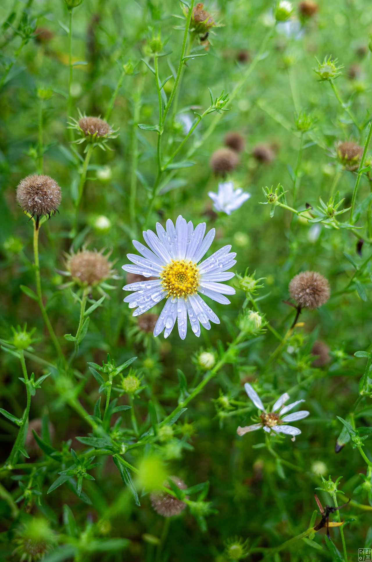 꽃잎에 붙은 물방울이 아름답게 담겼다. 꽃에 맺힌 물방울만큼이나 큰 땀방울이 뚝뚝 떨어진다. 땀에 젖은 옷이 등에 달라붙어 슬슬 불쾌한 느낌이 들지만, 마음만큼 맑은 호수를 보는 것처럼 상쾌하다.