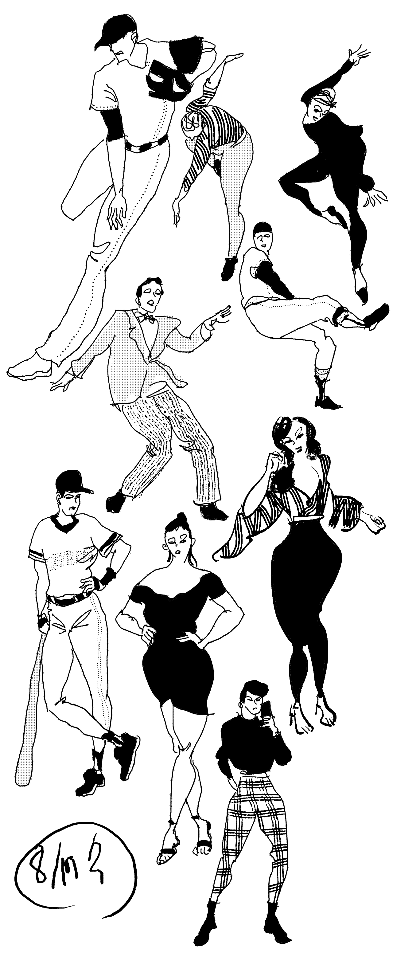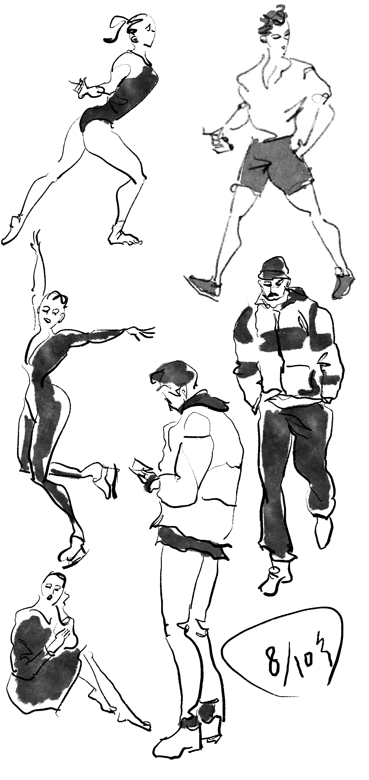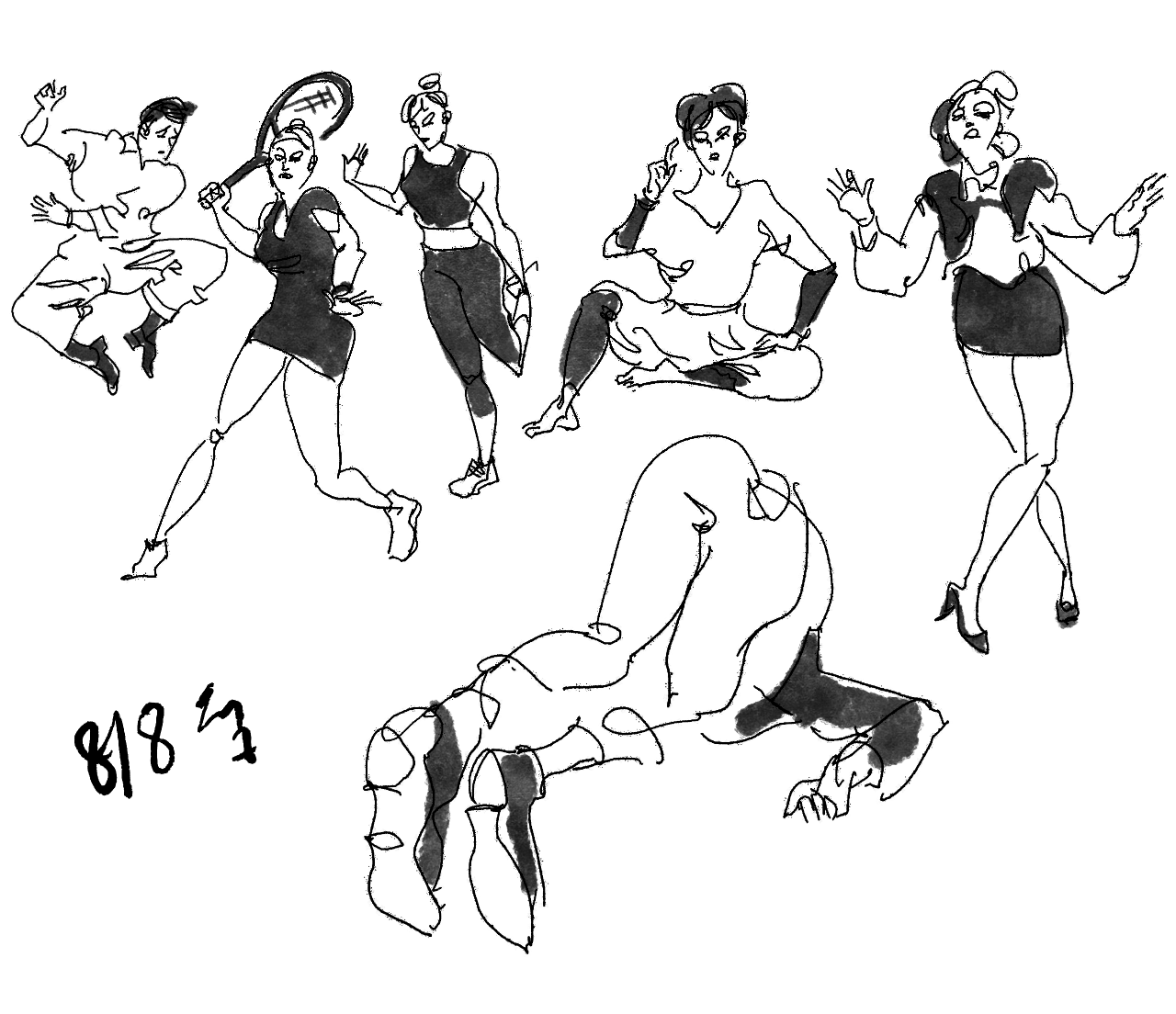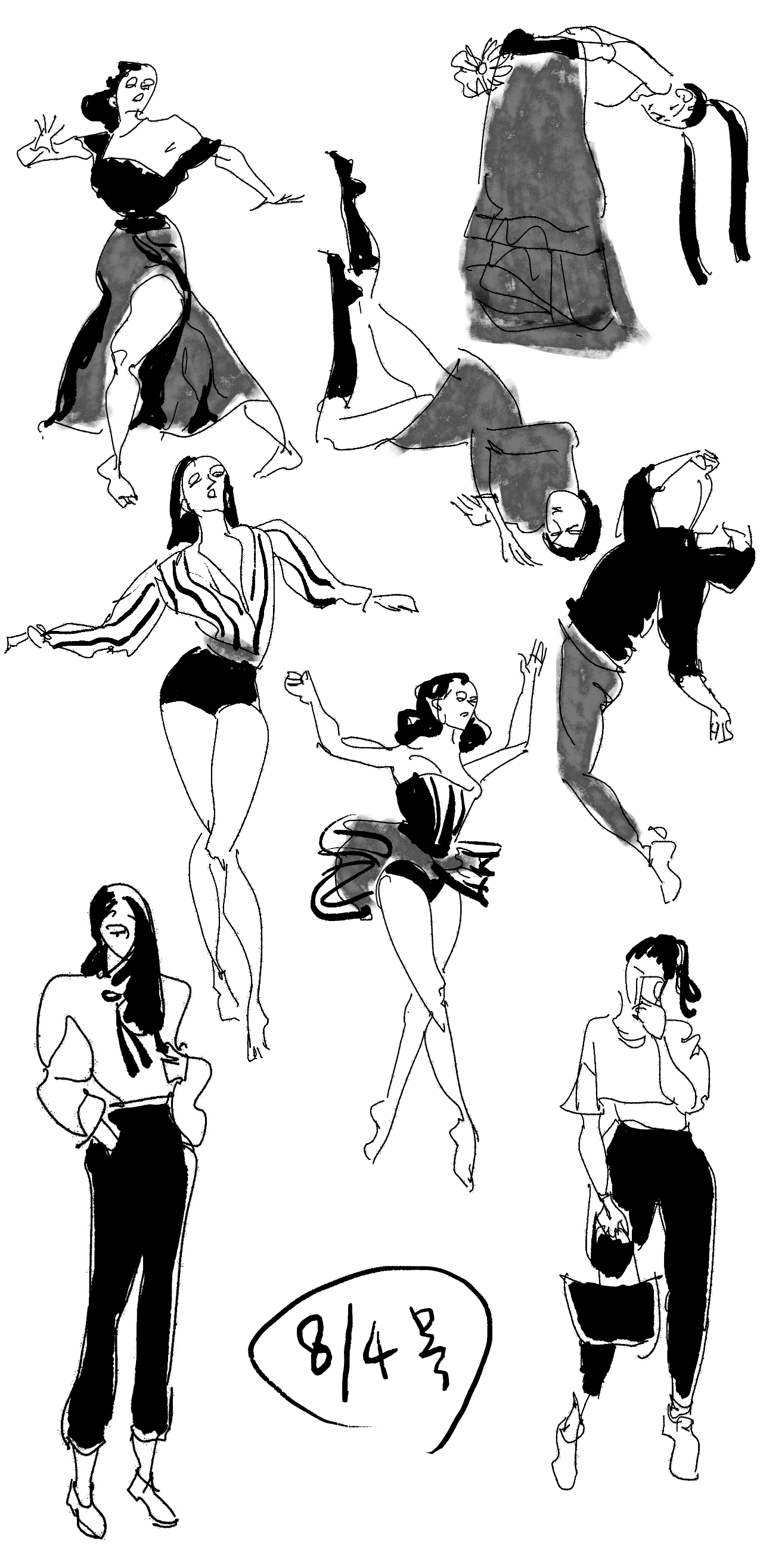 둘째주도 첫째주처럼 ink&wash 기법을 참고했다. 이 때는 진한 중간톤의 느슨한 채색이 답이라 생각했다. 하지만 라인과 채색 둘 다 느슨해져버리니 그림이 좀 지저분해졌다. 지금은 이 단점을 해결하기 위해 라인은 느슨하게 가되 채색은 생검정으로 공간을 단정하게 채움으로써 여백과 대비를 강조하는 방향으로 가고 있다.