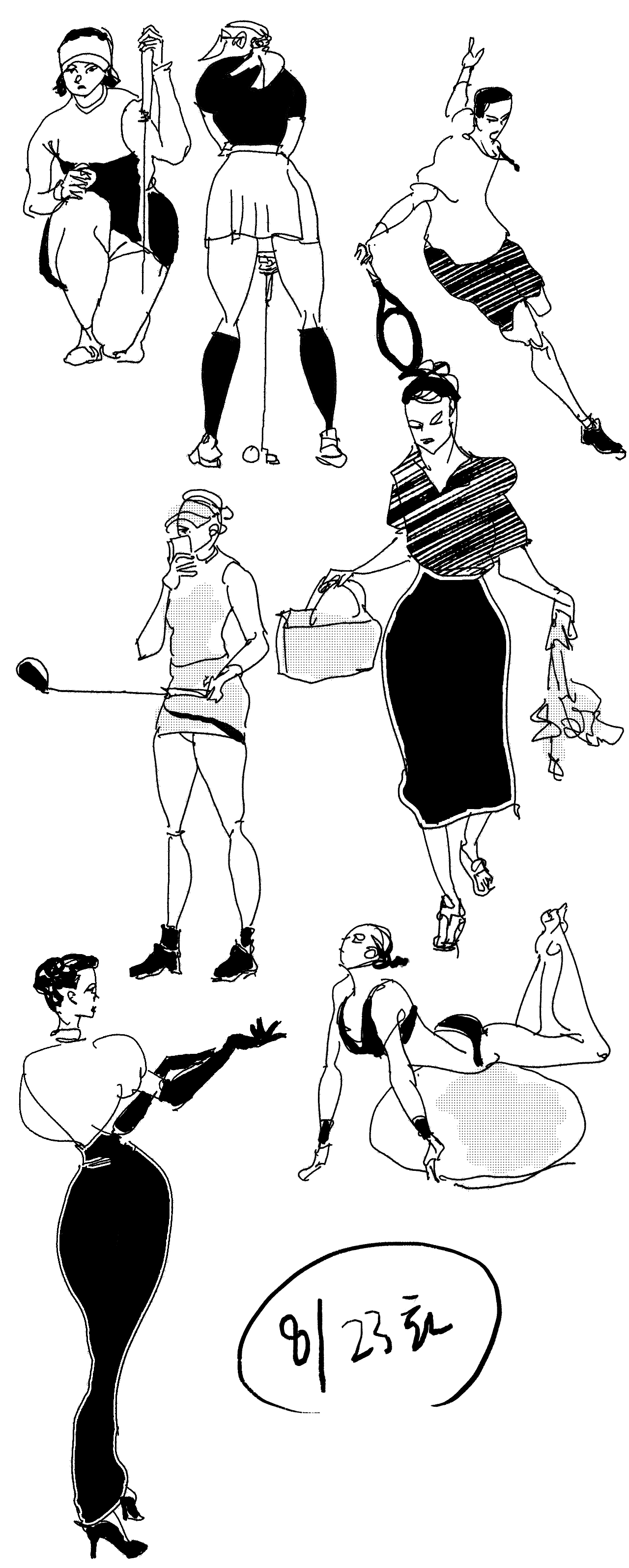 ink&wash 느낌을 의도했지만, 중간톤이 라인과 겉돌고 있다. 아직 중간톤을 어떻게 처리할지에 대한 기준이 잡히지 않은 상태이다.