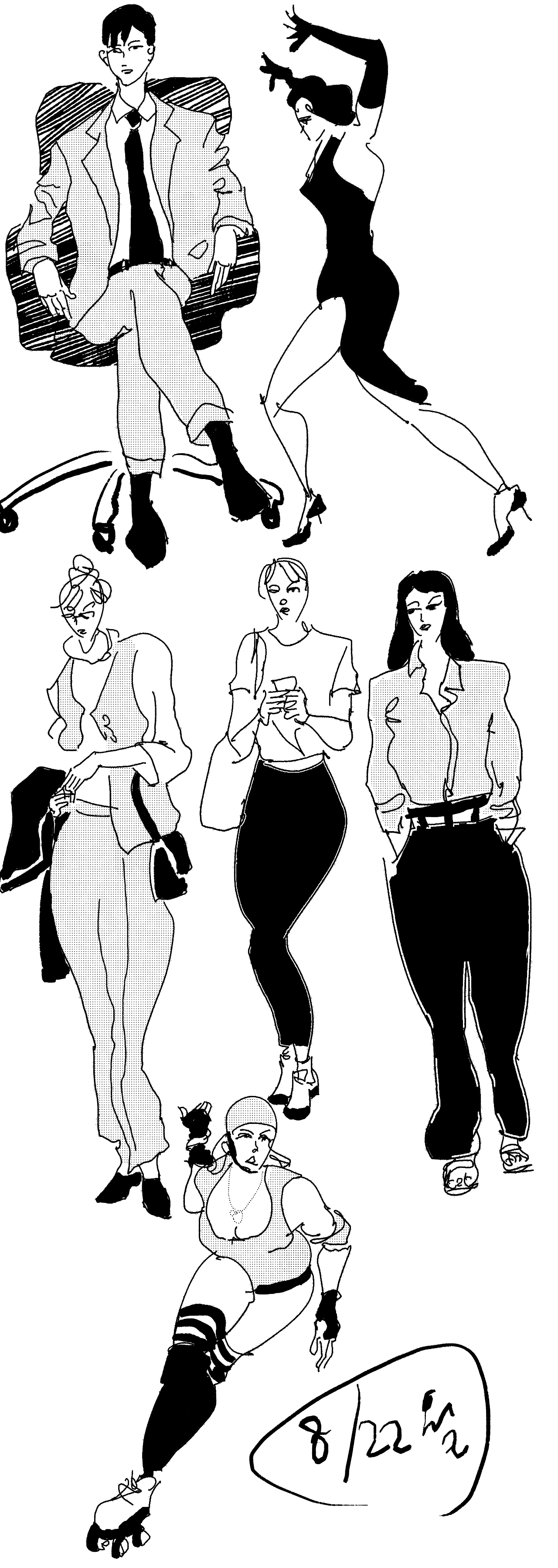 검정과 연한 미드톤에 진한 중간톤(이전보다 연한)을 추가했다. 앞으로 9월달에는 지금의 기법을 더 다듬는 방향으로 가겠다.