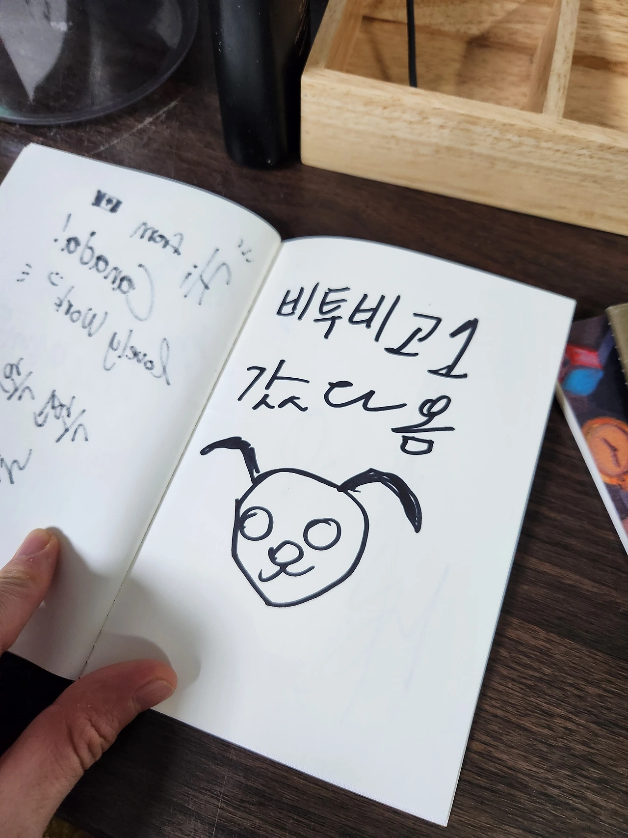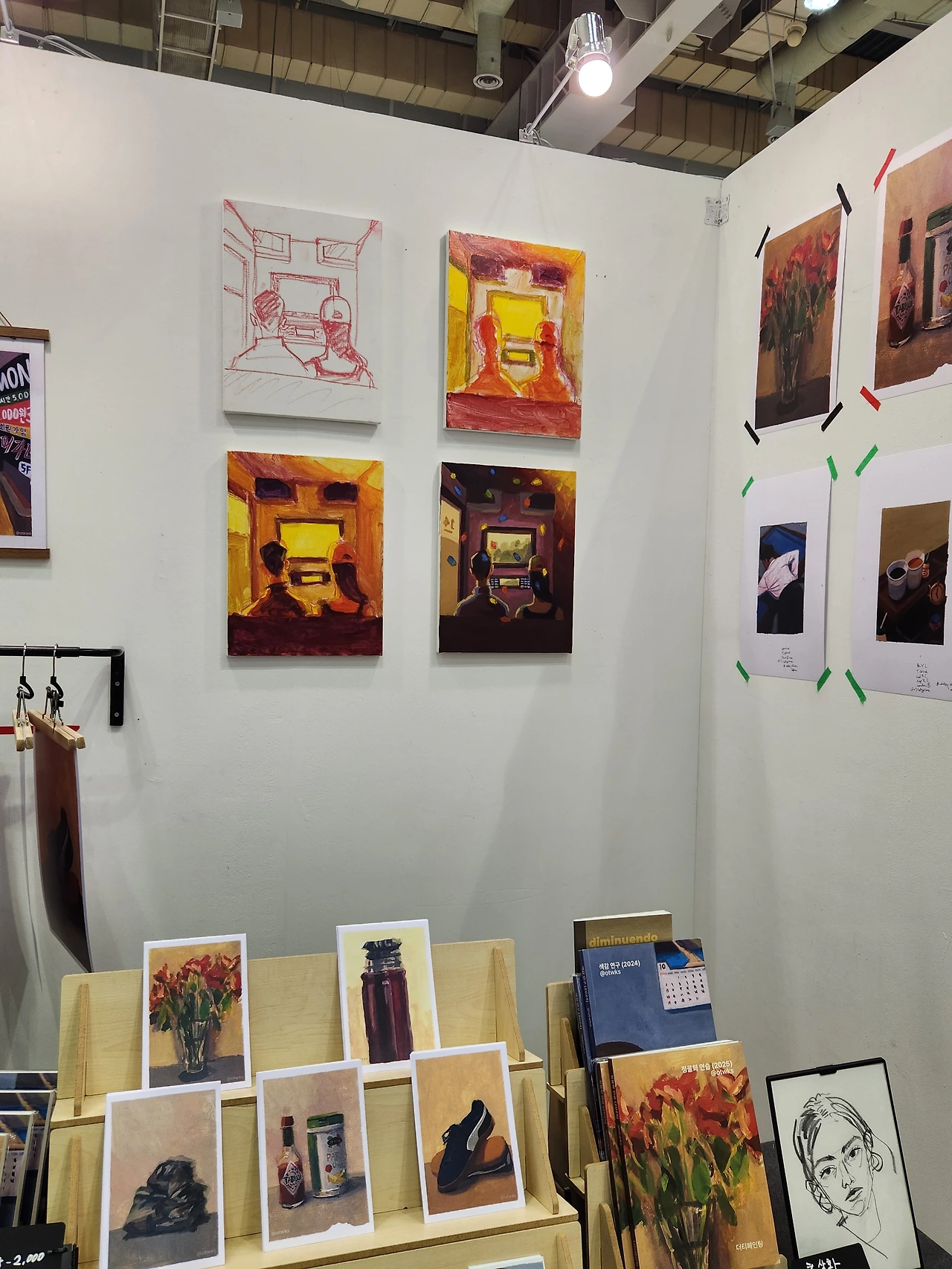 부스 칸막이 좁은 공간 접이식 의자에 몸을 꾸개어 기대 앉아 뒷편 벽면에는 지가 그린 그림을 지가 포토샵을 해다가 지가 업체에 인쇄를 맡긴 담에 지가 못질하고 지가 테이프로 붙여놓는 사람한테 아저씨 오빠 형씨 저기요 자네 라고 부르면은 쫌 그러니까 작가라고 불러주시는 거 아닐까요? 저는 처음에 그랬듯 지금도 앞으로도 작가 같은 게 아니라 새벽에 면도하면 오후 2시쯤부터 턱 끝이 푸르스름해지는 그림 공부하는 수염난 삼춘이에요. 격려해주신 분들, 같이 어색함을 이겨내고 눈 맞춰주신 분들 고마워요. 담에 또 봬여