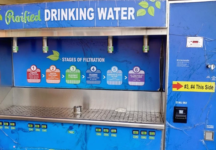 대다수의 Coin 세탁소에는 정수된 음용수를 파는 자판기가 설치되어 있습니다. 생수(Mineral Water)를 사먹기에 부담스러운 서민층들은 정수된 물(Purified Water)을 큰 통에 받아가서 음식을 하거나 식수로 사용하는 경우가 많기 때문입니다.