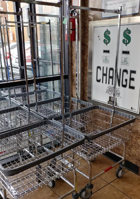 코인 세탁소에 들어가서 제일 먼저 해야 할 일은 깨끗한 카트를 고르는 일입니다.