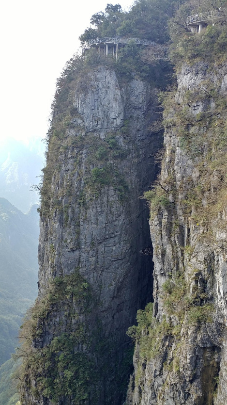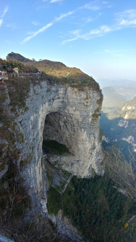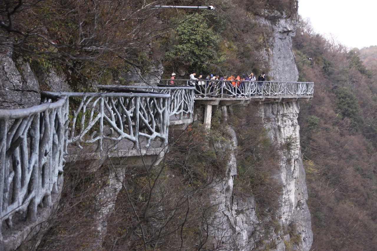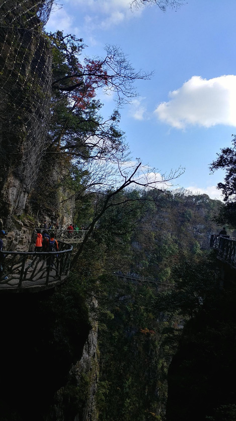 케이블카를 타고 올라가면 천문산 절벽을 돌아 천문산사까지 가는 잔도가 두 곳이 있는데, 우리 일행들은 오른쪽으로 도는 서쪽 잔도를 타고 올라갔습니다.