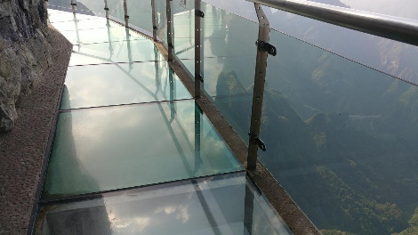 실제로 까마득한 높이의 대협곡 사이에 바닥이 유리로 된 다리 하나가 달랑 메달려 있는 것이니 그 위를 걸으면 아찔하겠지요.