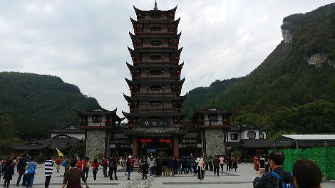 원가계 풍경구로 들어가는 입구는 커다란 8층 탑을 거쳐야 하는데, 이곳의 입장권은 2일권으로 되어있어서 가이드에게 물어보니, 워낙 날씨의 변화가 심해서 하루에 다 못보는 경우가 많기 때문에 2일권으로 판매하는 것이라고 합니다. 우리나라의 국립공원들도 입장권 판매 유형을 다변화 할 필요가 있어 보이는 부분이었습니다.