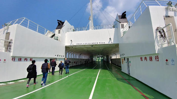 다카마츠에서 나오시마로 향하는 페리는 하루에도 여러편이 정기적으로 출발합니다. 페리이기 때문에 차량들을 탑재하는 넓은 갑판을 거쳐 승객들이 머무는 선실로 올라갑니다.