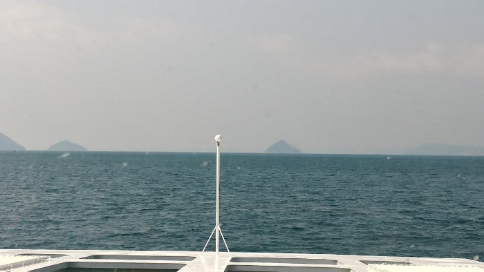 약 1시간 가량 배를 타고 세토내해를 가로질러 가면 천천히 다가오는 모습 뒤로 단촐한 모습의 나오시마 항 방파제가 모습을 드러냅니다.