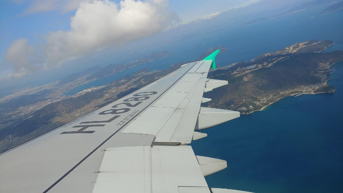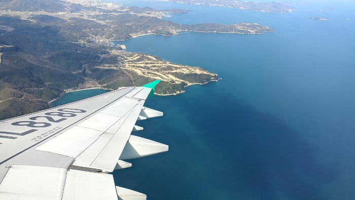 그래서인지, 시코쿠의 관문인 다카마츠 공항으로 향하는 비행기 바깥쪽의 풍경은 한가한 전원마을에 내려앉는듯한 느낌을 중도로 고요하고 평안한 광경이었습니다.