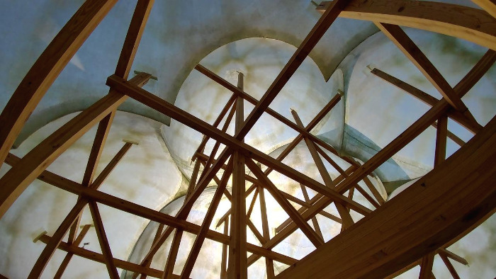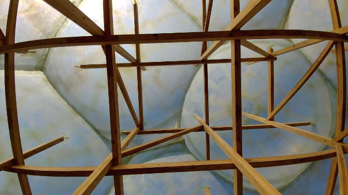 더 가깝게 다가가니 호박의 구멍 사이로 사람들이 들어갔다 나왔다 하는 모습이 보입니다. 안에 공간이 있는 것 같습니다.