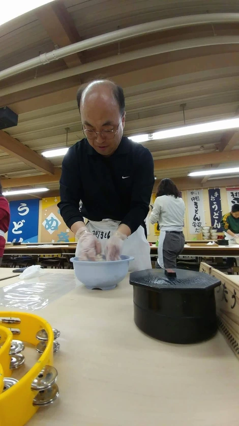 우동면 반죽은 내가 만든 반죽은 숙성기간을 거쳐 나중에 배우러 오는 사람들에게 제공되는 것이고, 내가 밀어서 뽑는 우동 반죽은 이전에 다른 사람들이 반죽을 해서 숙성시켜 둔 것을 사용하는 것이라고 합니다.