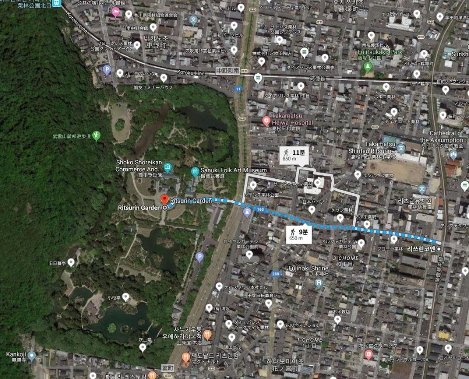 다카마츠 시내의 우동 맛집들은 리쓰린공원과 주오공원(中央公園) 사이에 몰려 있어서 도보로 이동해도 충분한 곳들이었습니다.