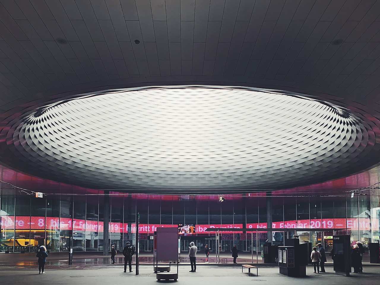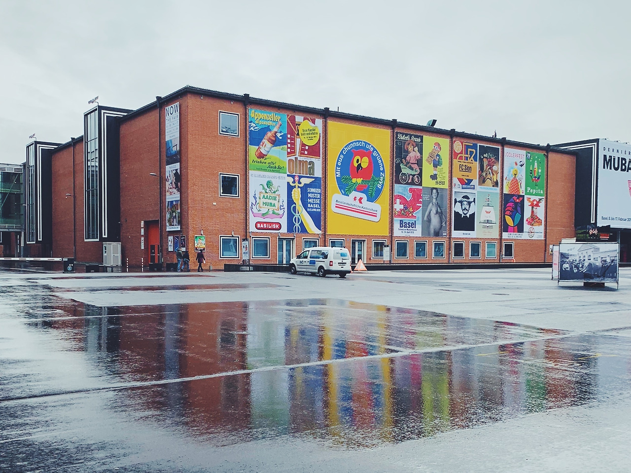 그러던 어느 날, 트램을 다른 노선으로 갈아타기 위해 정류장에 내렸더니 메세 바젤 Messe Basel의 뻥 뚫린 공간 한가운데였다. 우리는 갈아타야 하는 트램을 몇 번이나 보내며 헤르조그 & 뒤 뫼롱이 설계했다는, 바젤의 상징과도 같은 이 공간을 훑어봤다. 그리고 이 도시에서 가장 인상적인 헬베티카를 발견했다.