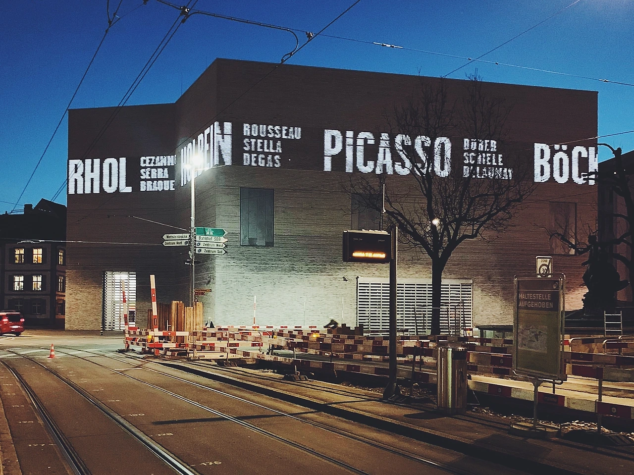 메세 바젤 뿐만이 아니었다. 2016년 지어진 '쿤스트뮤지엄 바젤 현대관 Kunstmuseum Basel Neubau'은 건축 벽면에 소장품의 작가 이름을 담은 글자를 밤새 흘려보낸다. 어느 밤에는 "DANKE ♥" 라며 영문모를 감사인사가 나오기도 했다.