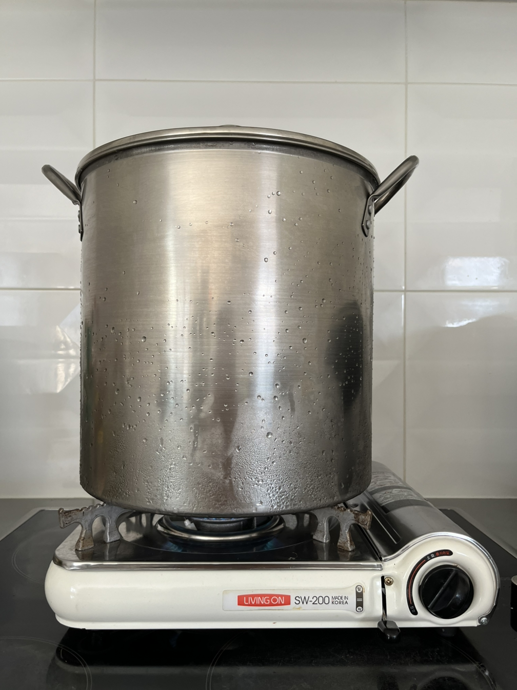 부탄가스도 10통을 비워내서야 우리에겐 곰탕 10팩이 생겼다.