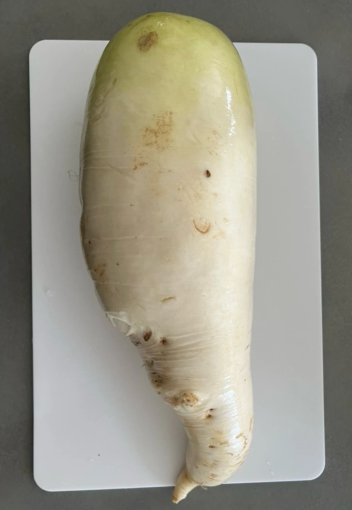 깨끗이 씻은 무를 아이가 먹기 좋은 크기로 자른다