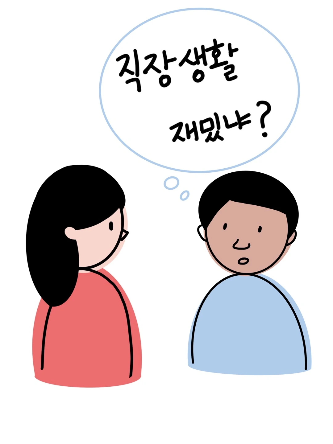내 대답은 부장님께 어떤 인상을 줬을까? 마냥 잘 보이기 위한 감언이설을 오히려 불편해하는 분이셨던지라 재미있게 웃어 넘겨주었다. 시간이 지날수록 부장님과 더욱 친해져서 편하게 대화하는 사이가 되었다. '어떻게 대답해야 옳은 답일까?'라고 고민하는 일도 당연히 줄었다. 나대로 편하게 얘기해도 상대방이 나를 이상하게 보지 않을 거란 확신이 생겼을 때 나도 한번 물어보았다.