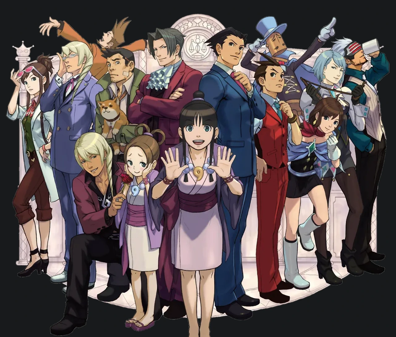 이 게임이 특별한 이유는 단순히 추리 게임의 재미 때문만이 아니었습니다. 나루호도의 곁에는 늘 든든한 동료들이 있었습니다. 라이벌 검사였지만 결국에는 환상의 파트너가 되는 미츠루기, 영매사라는 본업이 있지만 늘 옆에서 조수 역할을 해내던 마요이, 그리고 사건의 뒤에서 늘 엉뚱하게 얽히는 야하리까지. 이 인물들이 있었기에 역전의 순간은 더 극적으로 빛났습니다. 게다가 캐릭터들의 이름이 모두 일본어 단어와 감탄사에서 비롯된 언어유희라는 사실을 알았을 때, 저는 게임이 단순히 이야기 이상의 풍부한 문화적 층위를 갖추고 있다는 점에 감탄했습니다(+미츠루기는 '칼을 벤다'는 뜻으로 그의 성격을 잘 보여주고 나루호도는 '그렇군', 야하리는 '역시' 등을 나타냅니다). 단순한 법정극이 아니라, 유머와 언어적 재치를 함께 품은 작품이라는 사실이 매력적이었습니다.