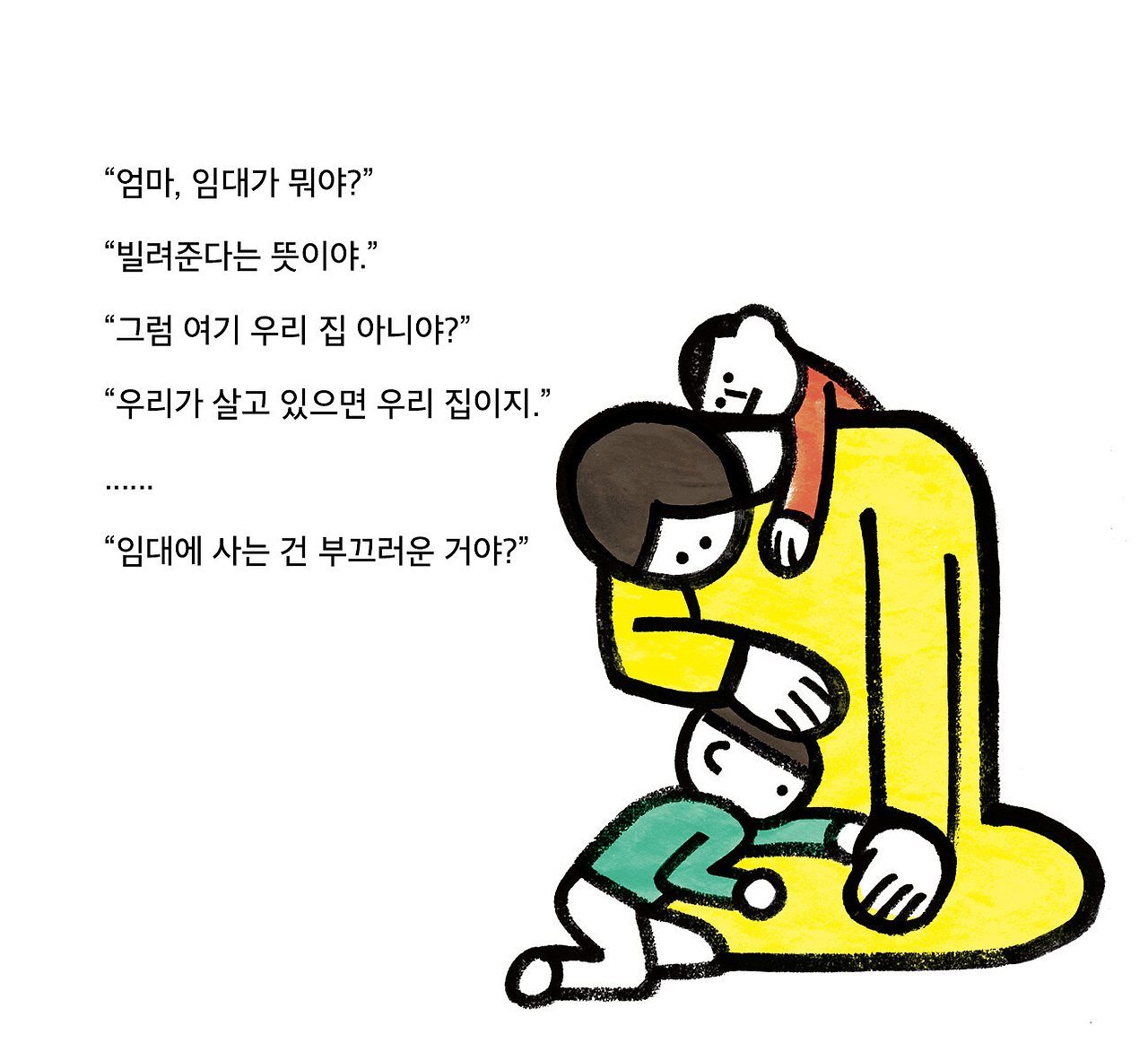 어느 동네 몇 평짜리 집에 사는지, 집을 사고팔아 얼마를 벌었는지를 더 중요하게 생각한다면 이 책 이야기를 들어보는 것은 어떨까요? 이웃과 더불어 사는 것이 얼마나 행복한지 알아가길 바랍니다. 아이들은 어른을 보고 배우기에 나 어떤 생각으로 살아가고 있는지 한 번쯤 생각해보았으면 합니다.