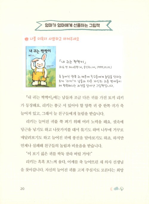 아이 마음도 들여다볼 수 있고 지친 육아로 힘들어하는 엄마에게 위로가 되는 그림책을 소개한 책이다.