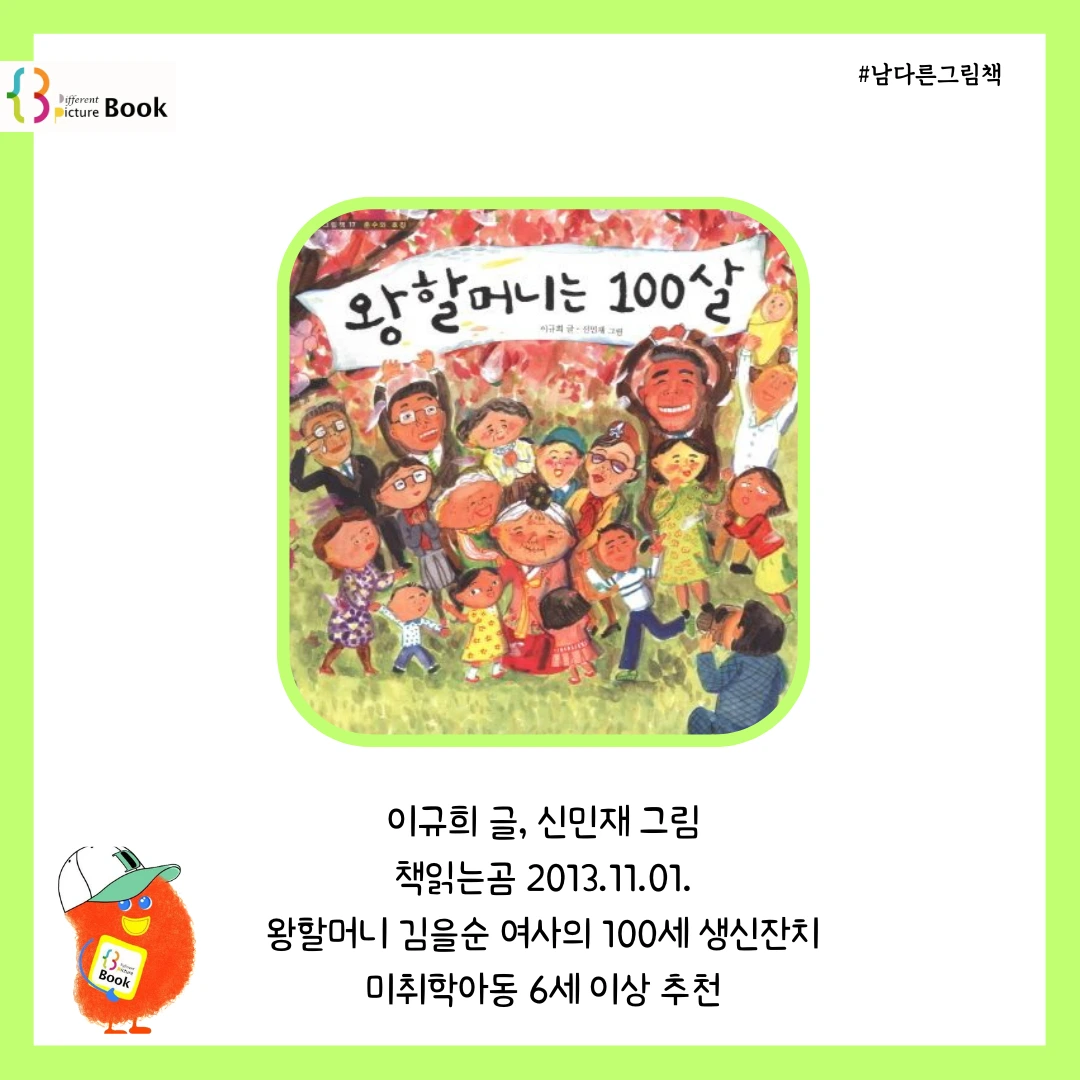 1. 왕할머니는 100살: 이규희 글, 신민재 그림 / 책읽는곰 2013.11.01.