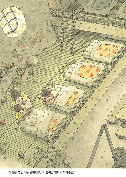 떡을 만들려면 많은 도움과 부지런함이 필수다. 귀여운 생쥐 가족들은 어떻게 떡을 만들까?
