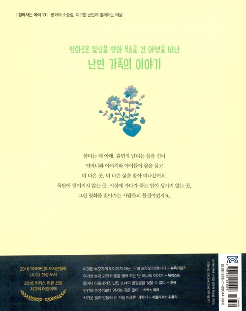 아직도 진행되고 있는 시리아 내전은 국제전으로 번졌고, 시리아 인구의 절반인 약 천만 명이 안전한 곳을 찾아 국경을 넘어간다. 마그리트 루어스가 쓰고 니자르 알리 바드르가 찍은 사진 그림책 << 징검다리 >>는 작가 마그리트 루어스가 페이스북에서 니자르 알리 바드르의 작품을 보면서 이야기 책으로 만들어낸다.