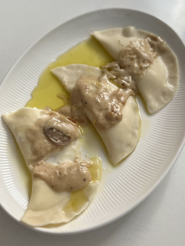 사진 속 라비올리처럼 올리브유가 메인인 것도 맛있었지만, 개인적으론 시판 소스에 절여진 게 더 맛있었다. 살짝 데친 라비올리에 스파게티 소스를 붓고 볶아주듯 익힌다. 그럼 소스가 꾸덕하게 입혀진 라비올리를 만날 수 있다. 거기에 올리브유를 듬뿍 뿌려보자. "촉촉하면서 고소하고 녹진해~" 게눈 감추듯 한 접시를 해치울 수 있다.
